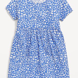 Short-Sleeve Ribbed Fit and Flare Pocket Dress for Toddler Girls