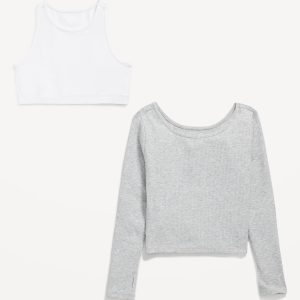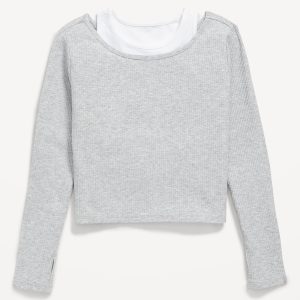 2-In-1 Ribbed Performance Top for Girls: boat neck, long sleeves, thumb-hole slits, tank top underneath, high neckline, sleeveless, #789715
