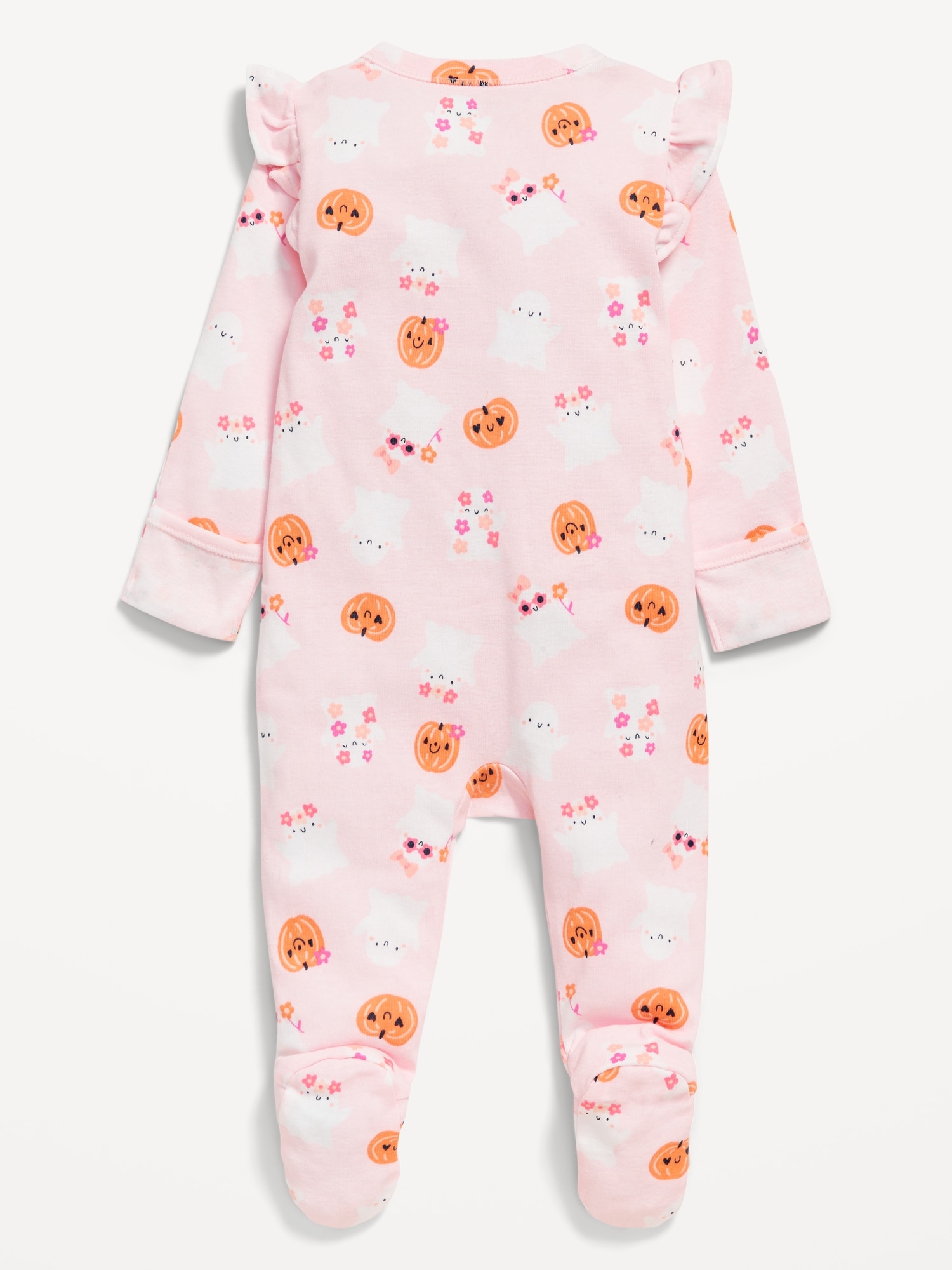 2-Way-Zip Sleep & Play Ruffle-Shoulder Footed One-Piece for Baby