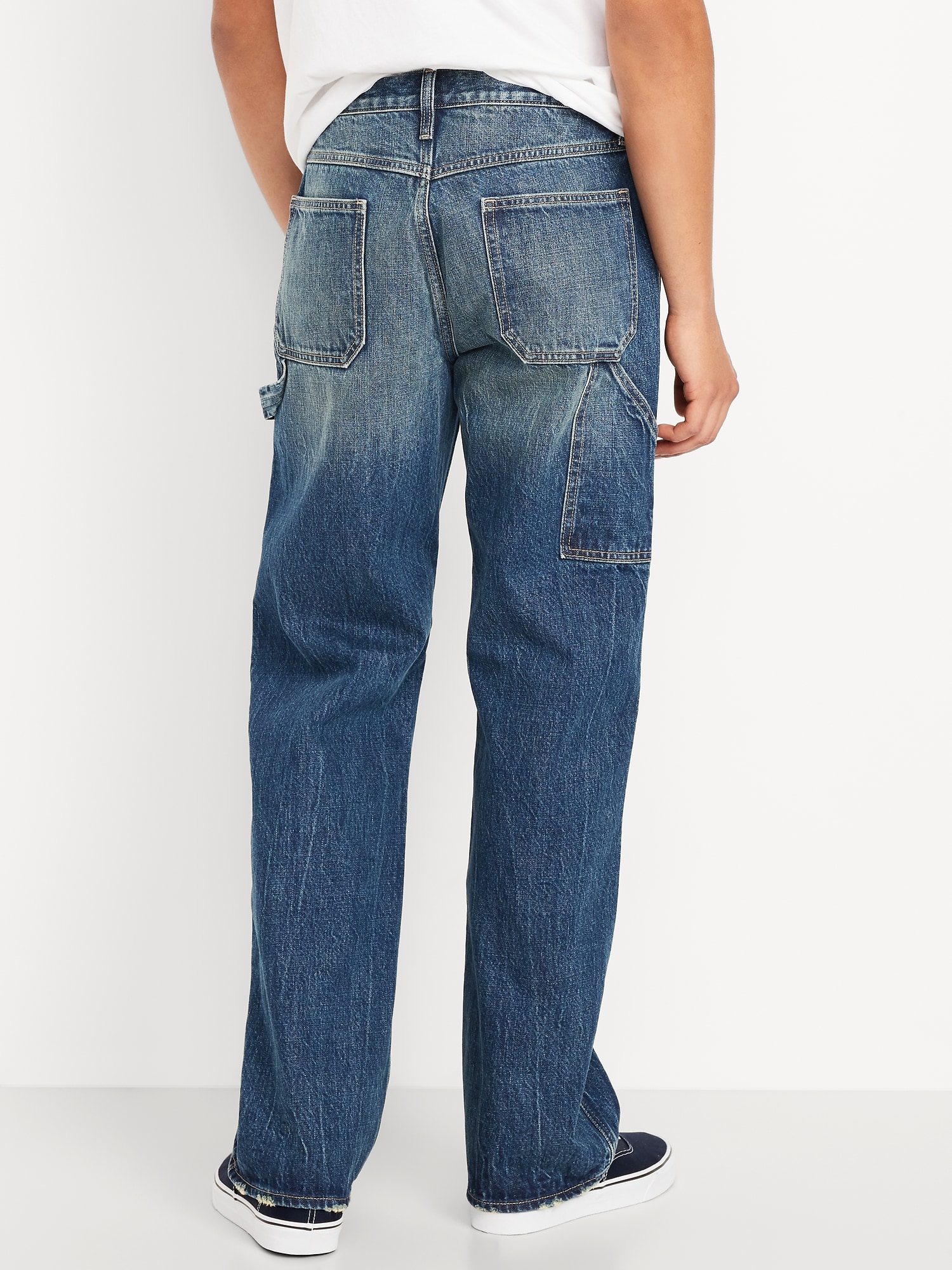 90’s Baggy Carpenter Jeans: zip fly, front scoop pockets, back patch pockets, left hammer loop, whiskering and fading, #788029