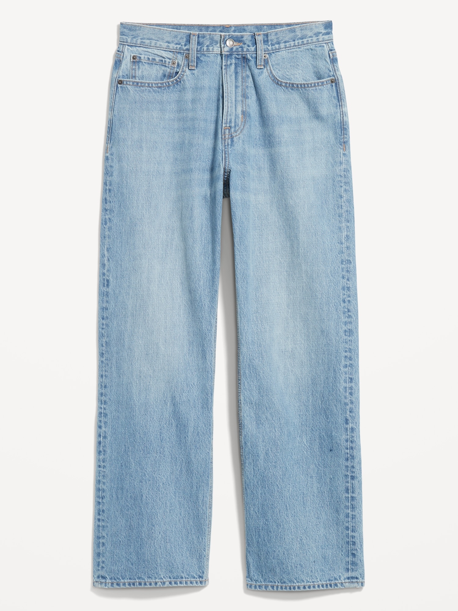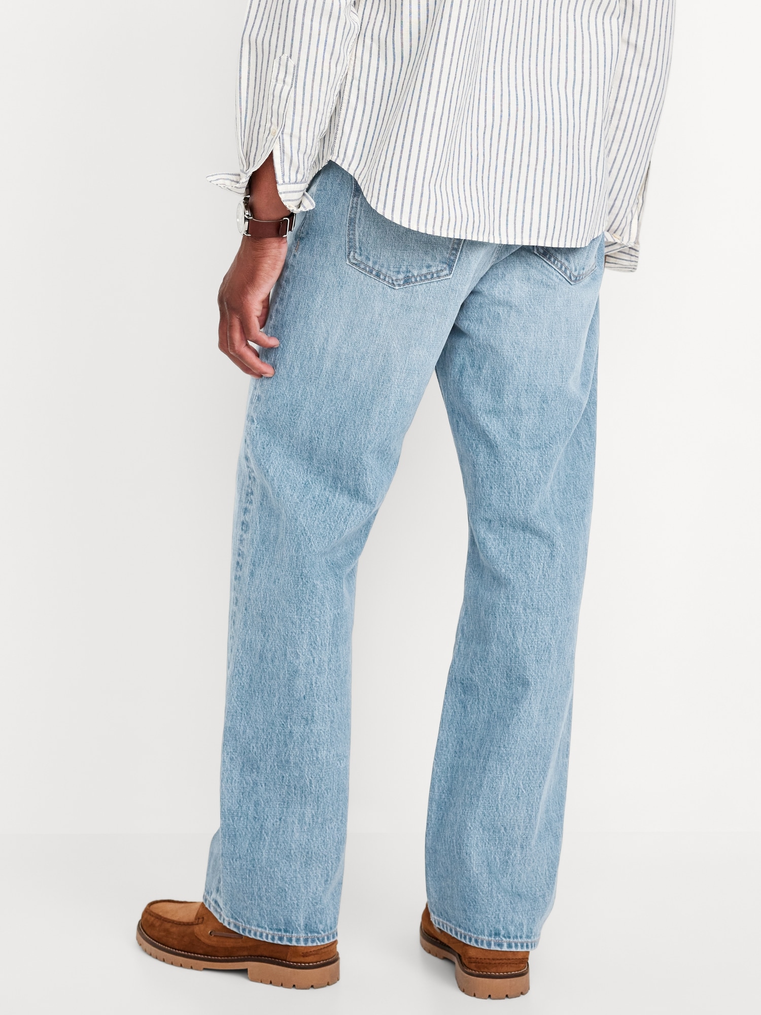 90's Baggy Jeans: Roomy from hip to ankle, with puddling at the foot.zip fly, front scoop pockets, back patch pockets, #788030