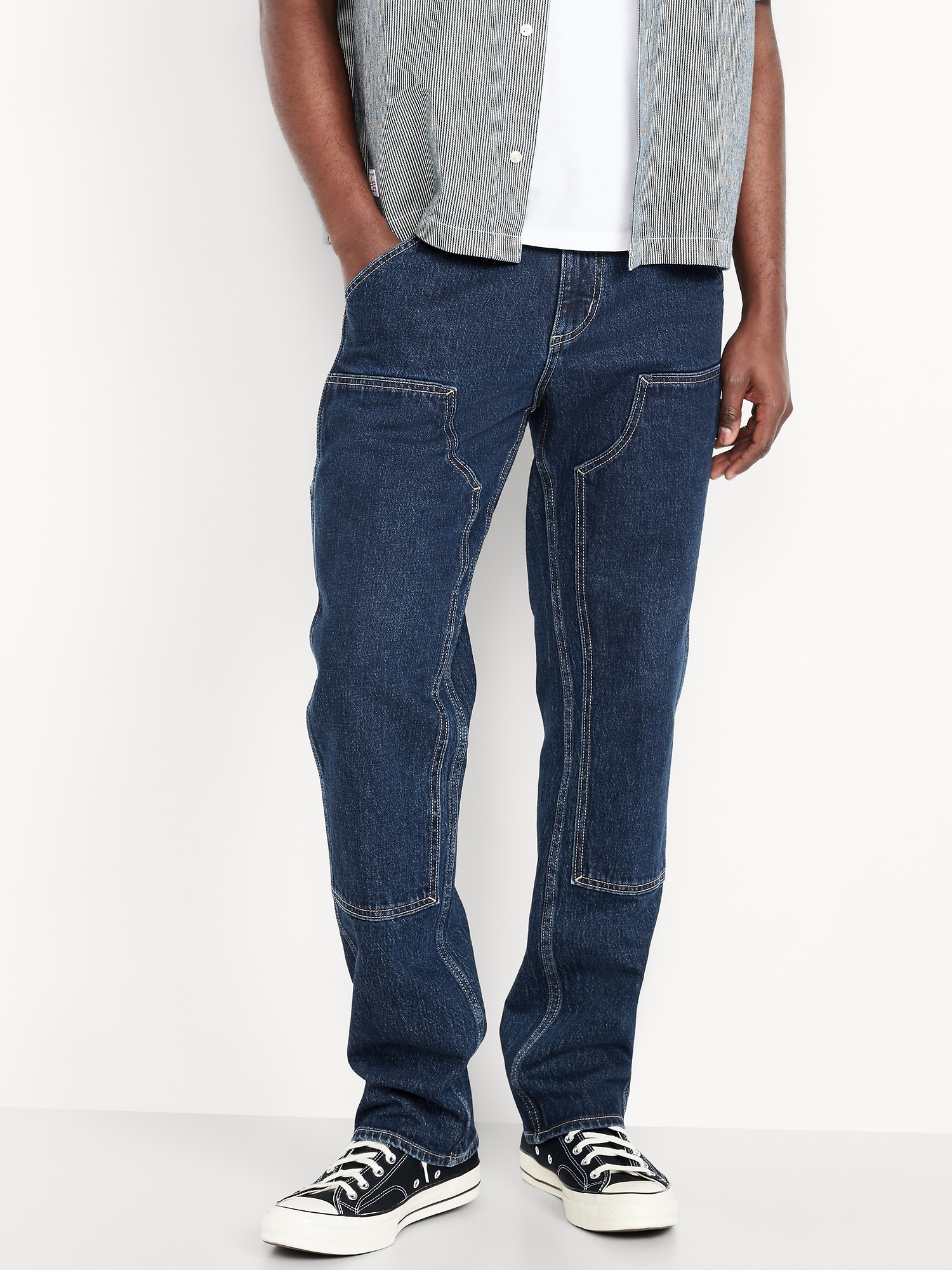 90's Straight Built-In Flex Carpenter Jeans: Relaxed through the hip and thigh, with a straight leg and vintage feel.button front, zip fly, hip pockets, back patch pockets, hammer loop, reinforced knees, #788044