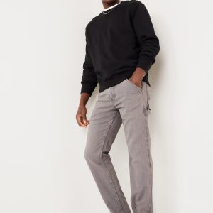 90's Straight Built-In Flex Jeans: Relaxed through the hip and thigh, with a straight leg and vintage feel.button front, zip fly, hip pockets, back patch pockets, hammer loop, reinforced knees, #788044