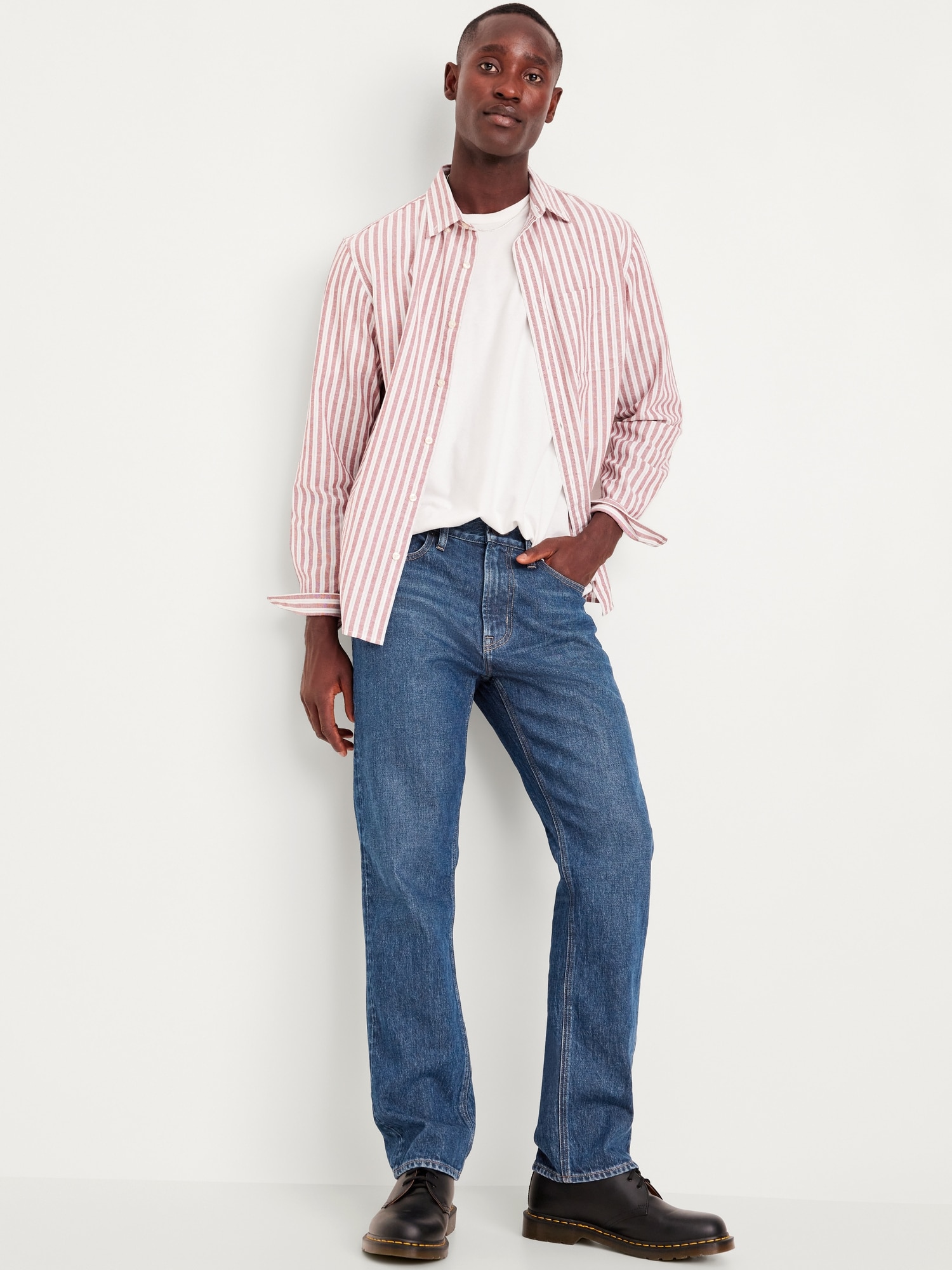 90's Straight Built-In Flex Jeans: Relaxed through the hip, with a straight leg.button front, belt loops, zip fly, whiskering and fading, front scoop pockets, back patch pockets, #788043
