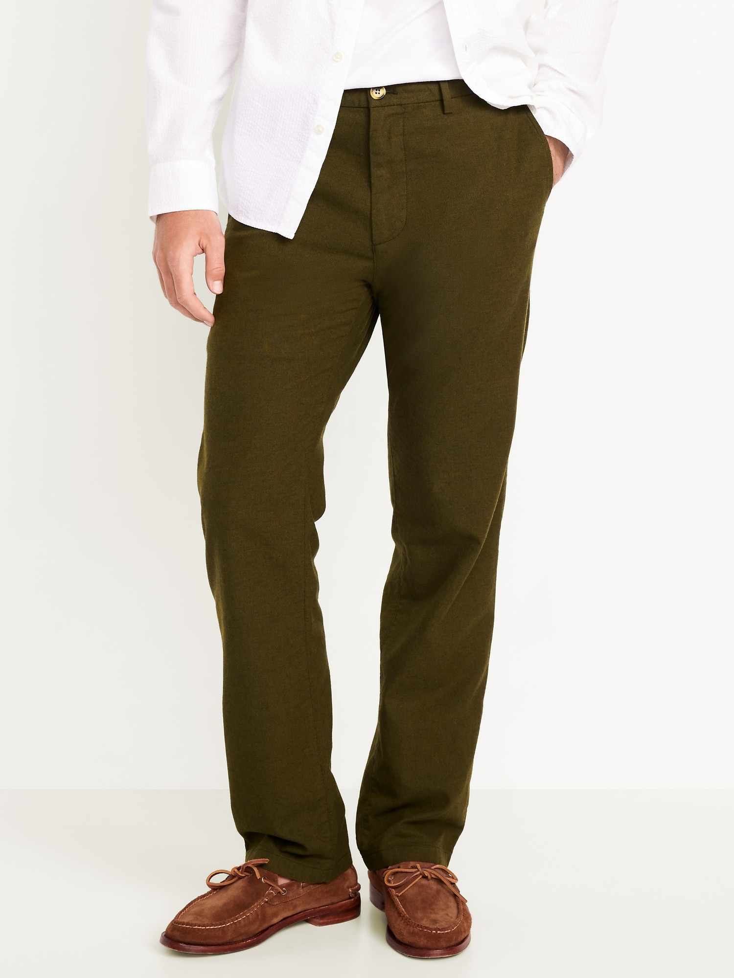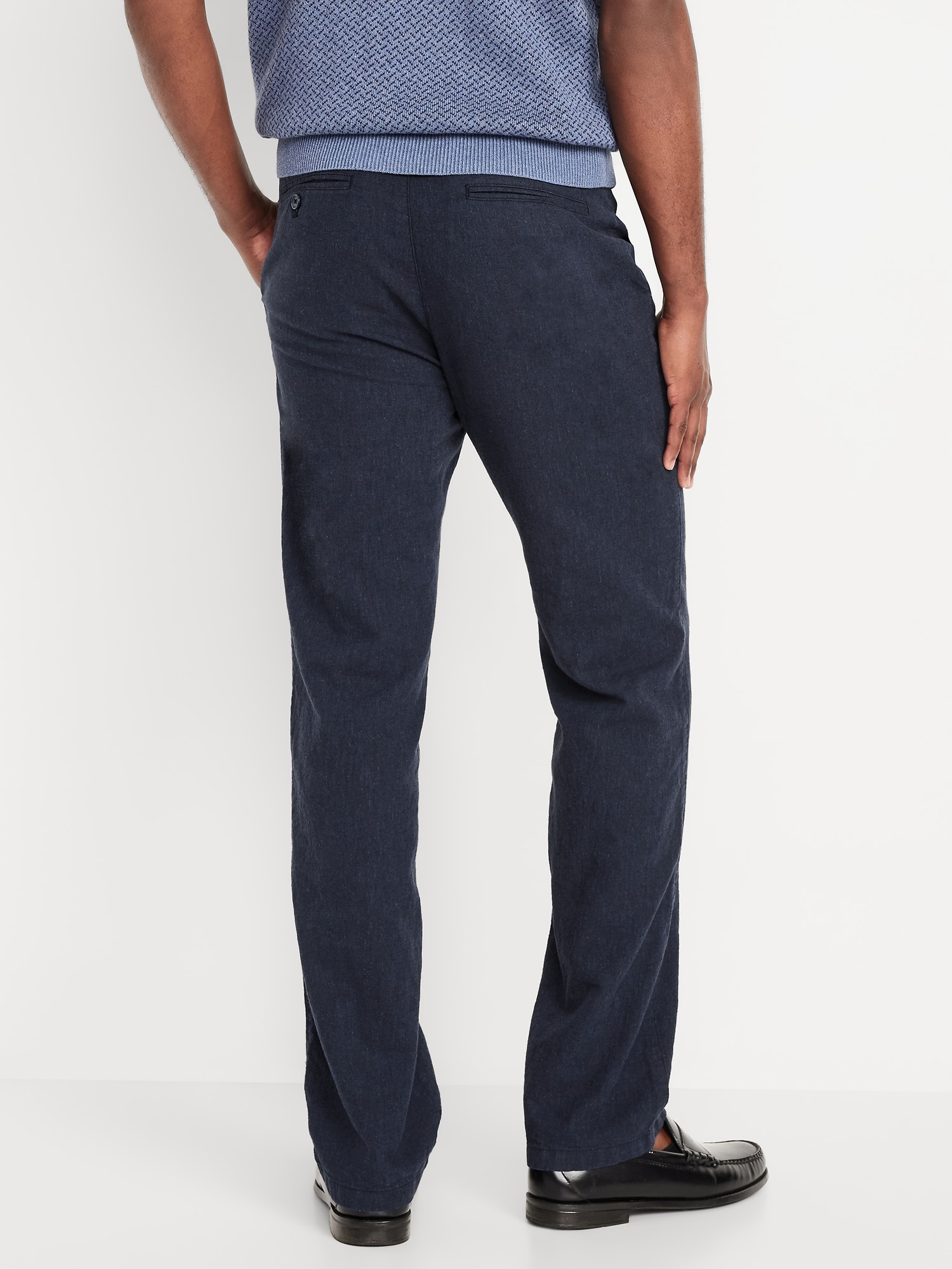 90's Straight Linen-Blend Chino Pants: button front, belt loops, zip fly, hip pockets, back welt pockets with left button, pair back to our linen-blend blazer, #751381
