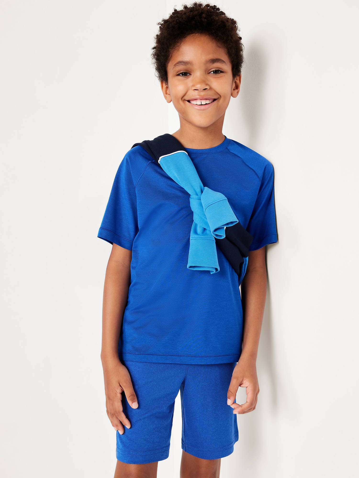 Above Knee Go-Dry Performance Shorts for Boys: elasticized waistband, interior drawstring, on-seam pockets, #695644