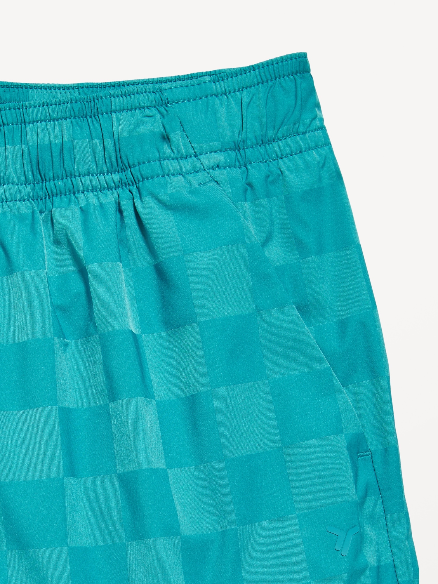 Above Knee Performance Shorts for Boys: elasticized waistband, functional drawstring, diagonal on-seam pockets, all-over checkered pattern, #762122