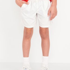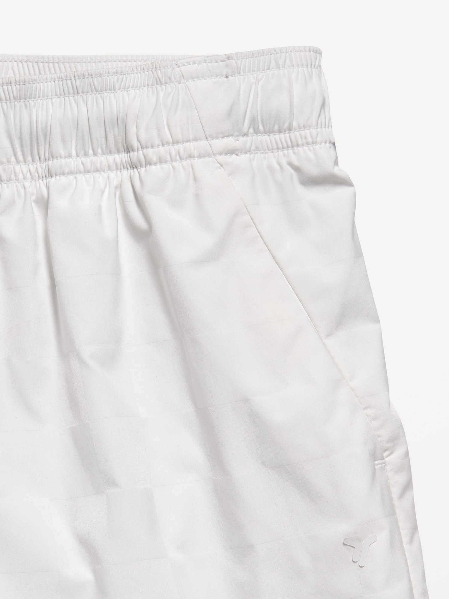 Above Knee Performance Shorts for Boys: elasticized waistband, functional drawstring, diagonal on-seam pockets, all-over checkered pattern, #762122