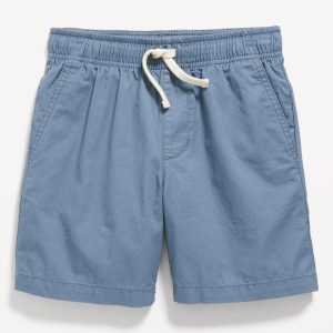 Above Knee Twill Pull-On Shorts for Boys: elasticized waistband, functional drawstring, faux fly, diagonal on-seam pockets, single welt pocket at back, easy pull-on style, #860738