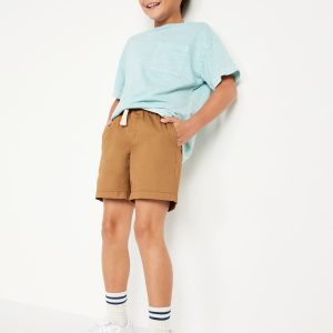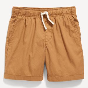Above Knee Twill Pull-On Shorts for Boys: elasticized waistband, functional drawstring, faux fly, diagonal on-seam pockets, single welt pocket at back, easy pull-on style, #860738