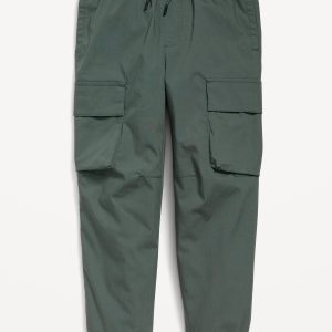 Baggy Cargo Pants for Boys: elasticized waist, functional drawstring, on-seam pockets, single welt pocket at back, adhesive secure-close cargo pocket at each leg, cinched leg cuffs, #565426