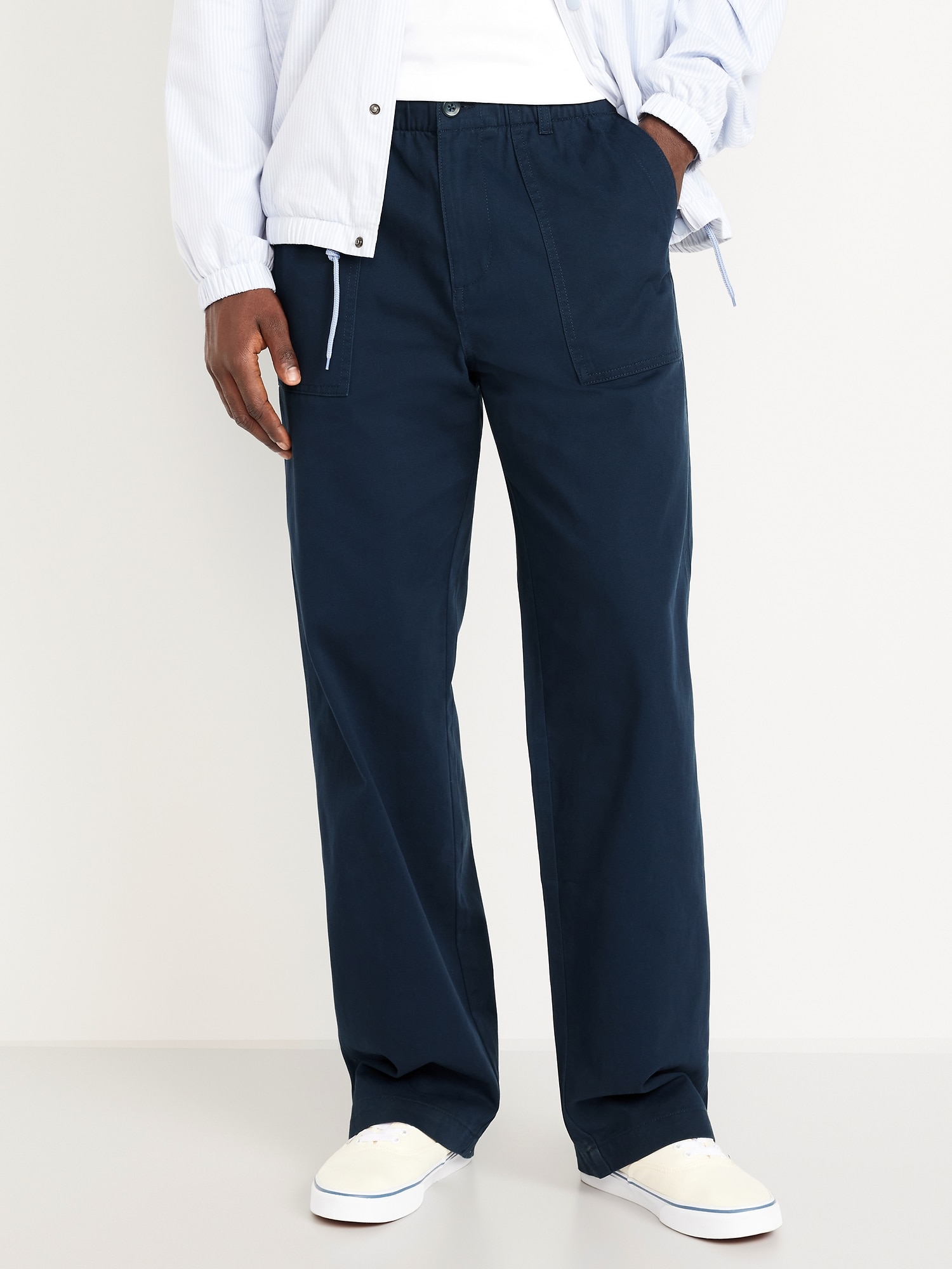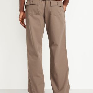 Baggy Soft Workwear Pants: Relaxed from hip to ankle with a laid-back attitude.elasticized drawstring waistband, button-front waist, zip fly, front utility pockets, back button-flap pockets, #751382