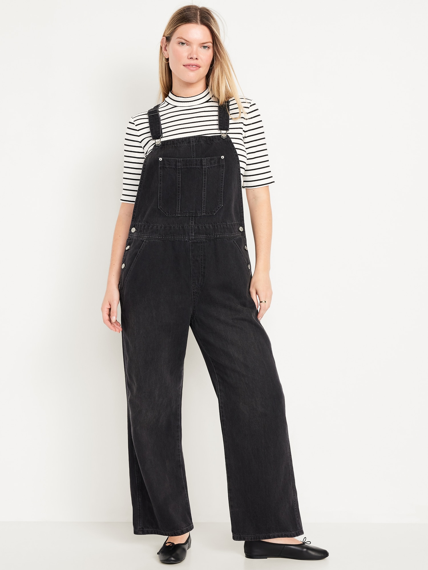 Baggy Wide-Leg Jean Overalls: The oversized jean overall of your teenage dreams.adjustable buckled straps, square neck, v-back, bib pocket, buttons at hip, front utility pockets, back patch pockets, #846922
