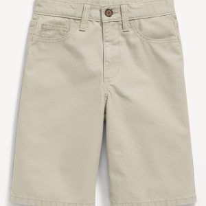 Below Knee Baggy Canvas Shorts for Boys: interior adjustable waistband, regular button closure, zip fly, scoop pockets and coin pocket in front, patch pockets in back, below knee, #766370