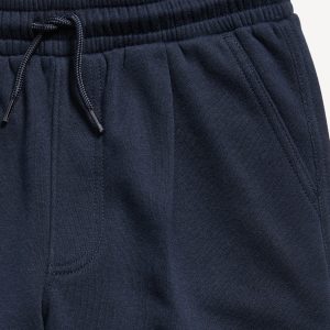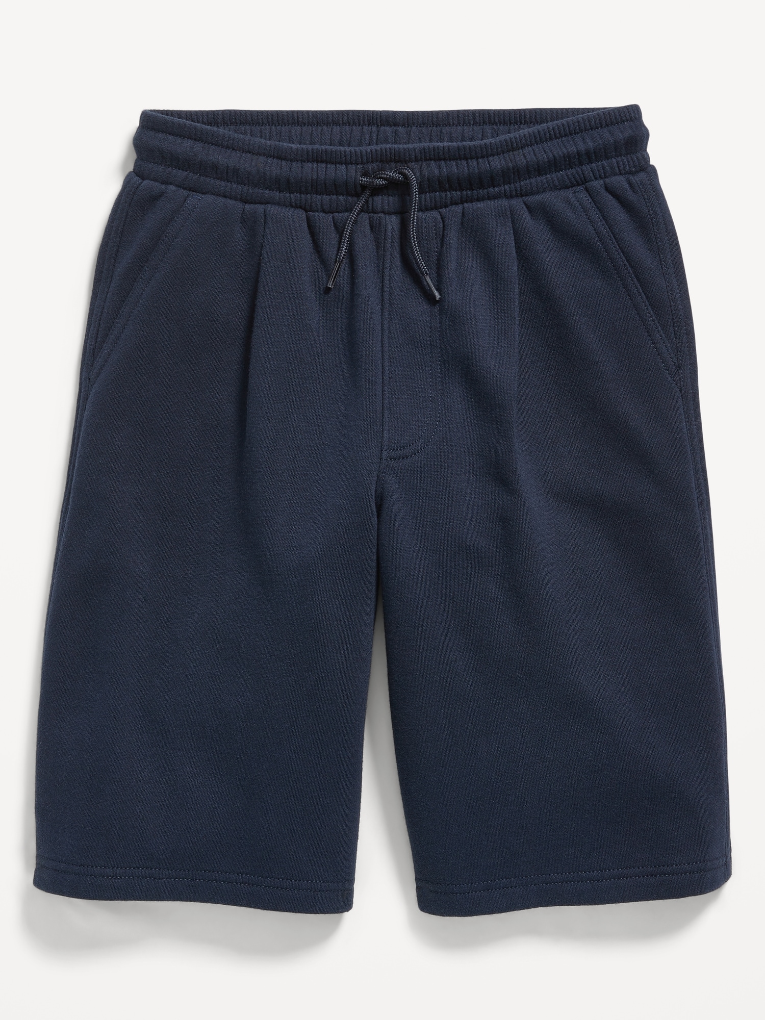 Below Knee Baggy Fleece Shorts for Boys: elasticized waistband, functional drawstring, diagonal on-seam pockets, single patch pocket at back, #805560
