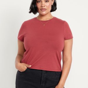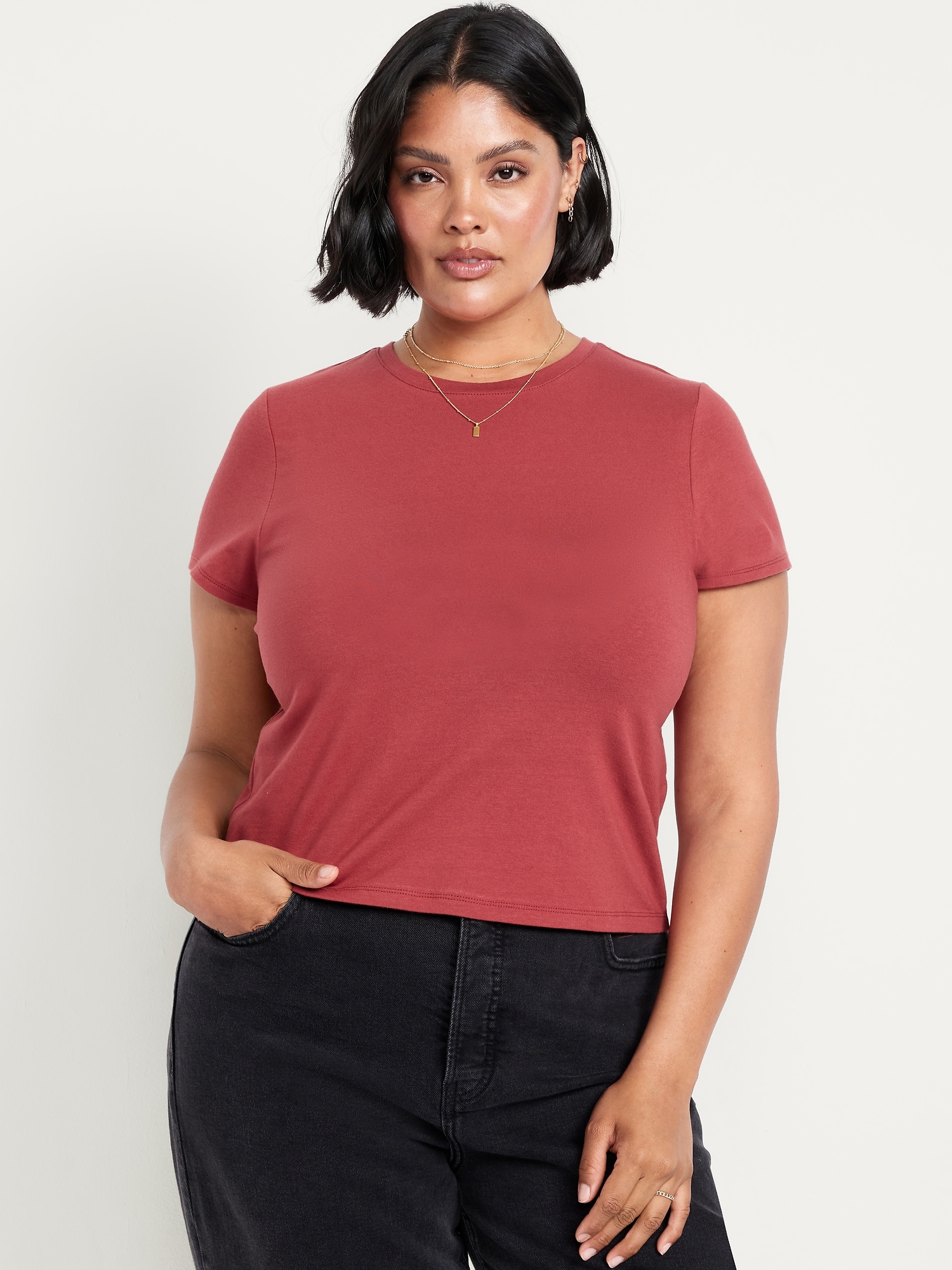 Bestee Crop T-Shirt: A classic, slim fit that’s instantly polished.rib-knit crew neck, short sleeves, #537378