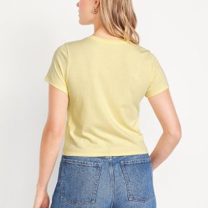 Bestee Crop T-Shirt: A classic, slim fit that’s instantly polished.rib-knit crew neck, short sleeves, #537378