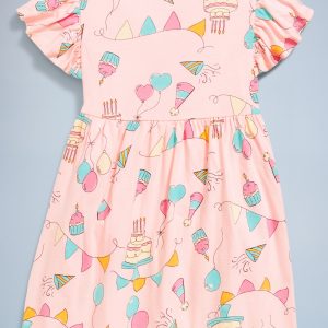Birthday Flutter-Sleeve Fit and Flare Dress for Toddler Girls