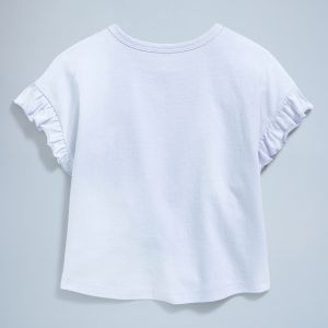 Birthday Graphic T-Shirt for Toddler Girls: The (Bestest) Birthday Shop!crew neck, short ruffle sleeves, graphic at front, rounded hem, #689939