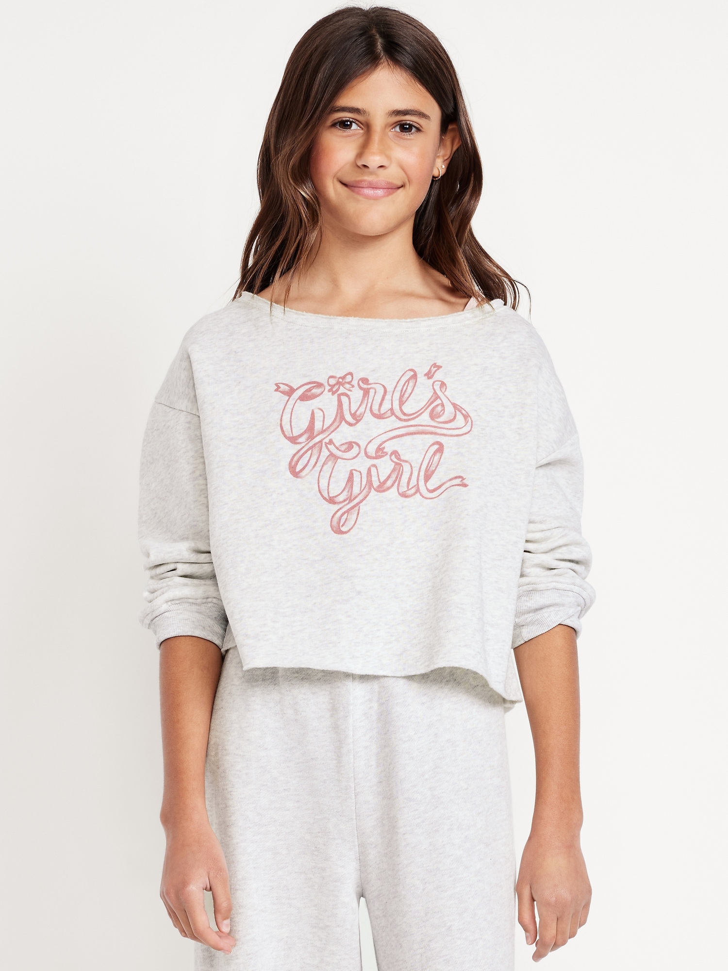 Boat-Neck Graphic Sweatshirt for Girls: boat neck, long sleeves, drop shoulders, graphic at front, #788048