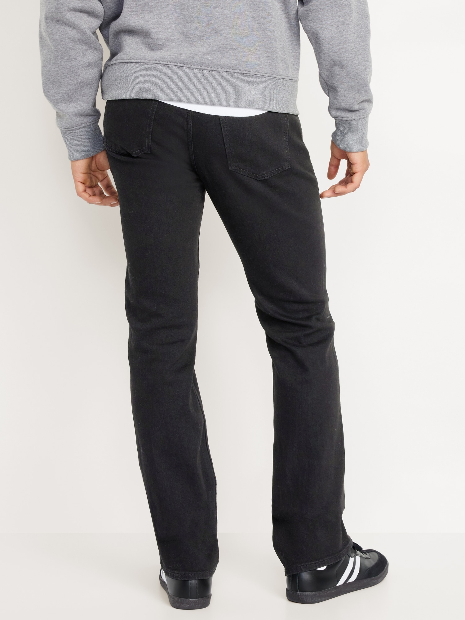 Boot-Cut Built-In Flex Jeans: Relaxed through the hip, wide below the knee.button front, whiskering and fading, zip fly, front scoop pockets, back patch pockets, #564925