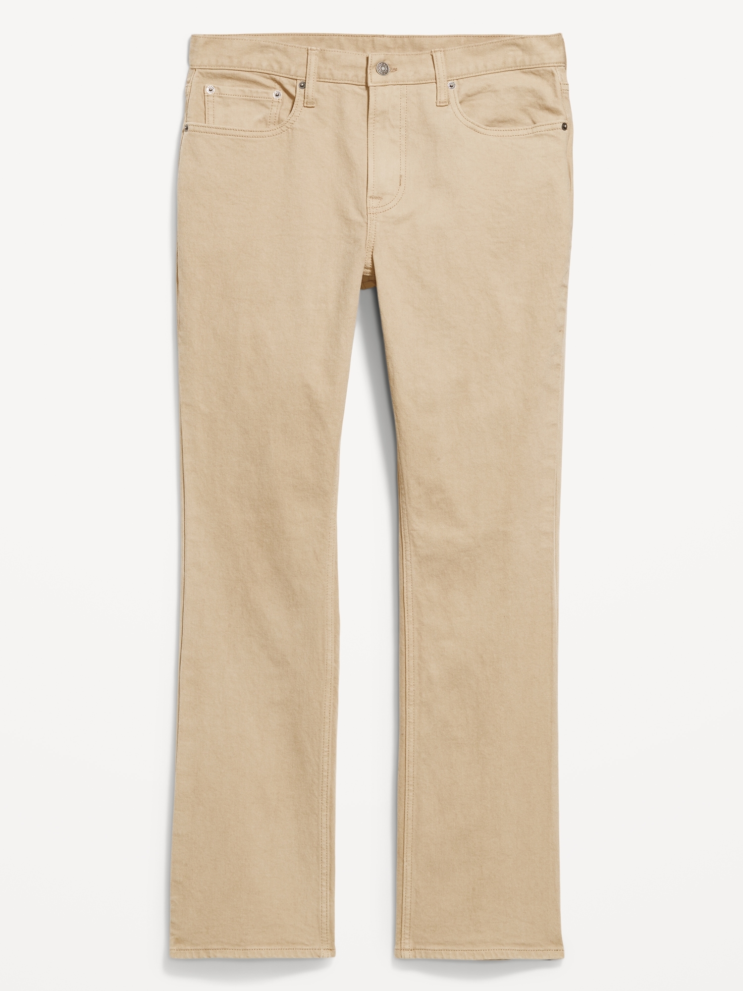 Boot-Cut Built-In Flex Jeans: Relaxed through the hip, wide below the knee.button front, whiskering and fading, zip fly, front scoop pockets, back patch pockets, #564925