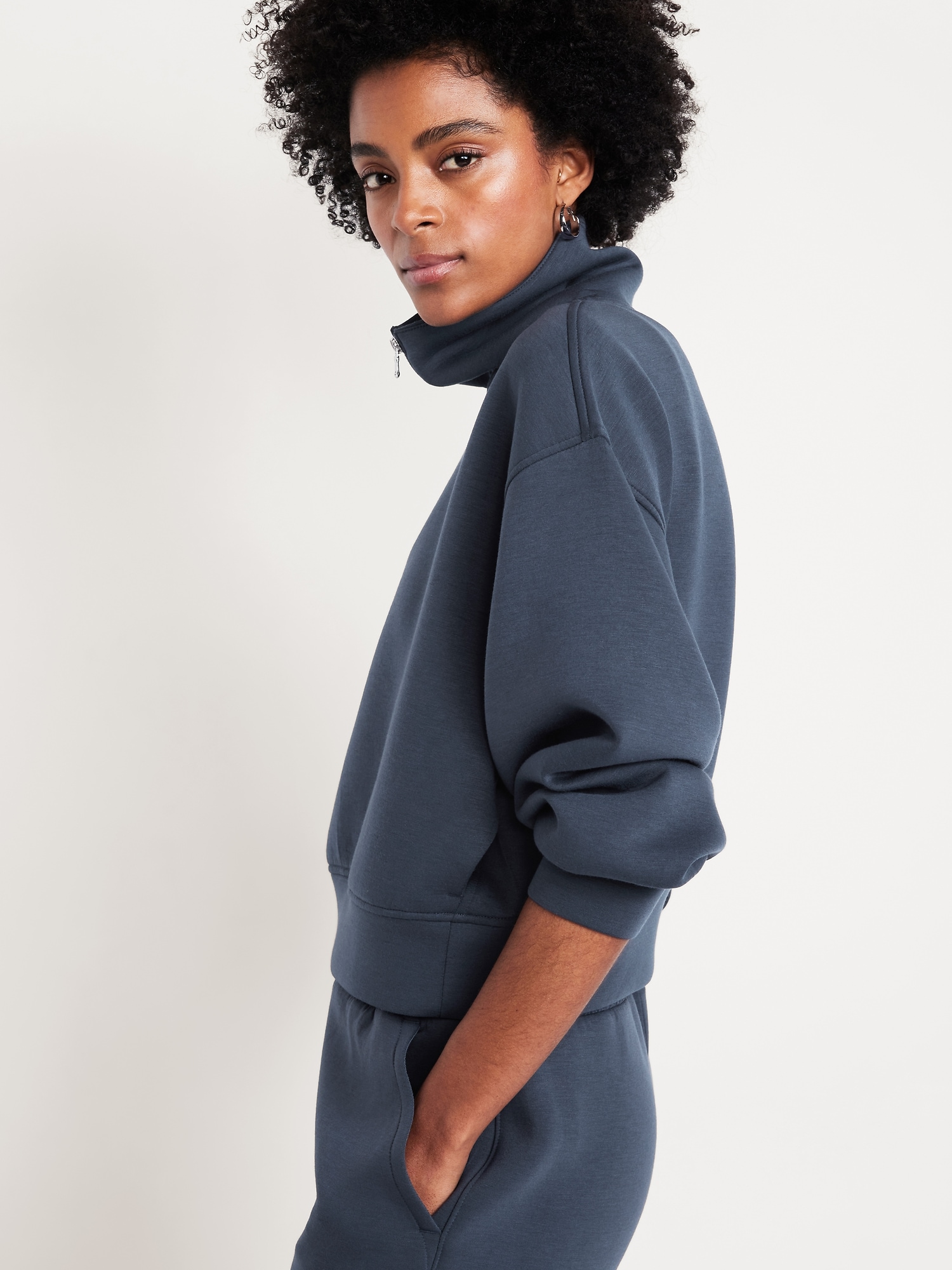 Bounce Fleece Half-Zip Pullover Sweatshirt: Featuring Bounce Fleece. A smooth, cooling finish that feels good and looks chic everywhere you go.half-zip collar, drop-shoulder sleeves, on-seam pockets, pull-over style, breathable, #583079