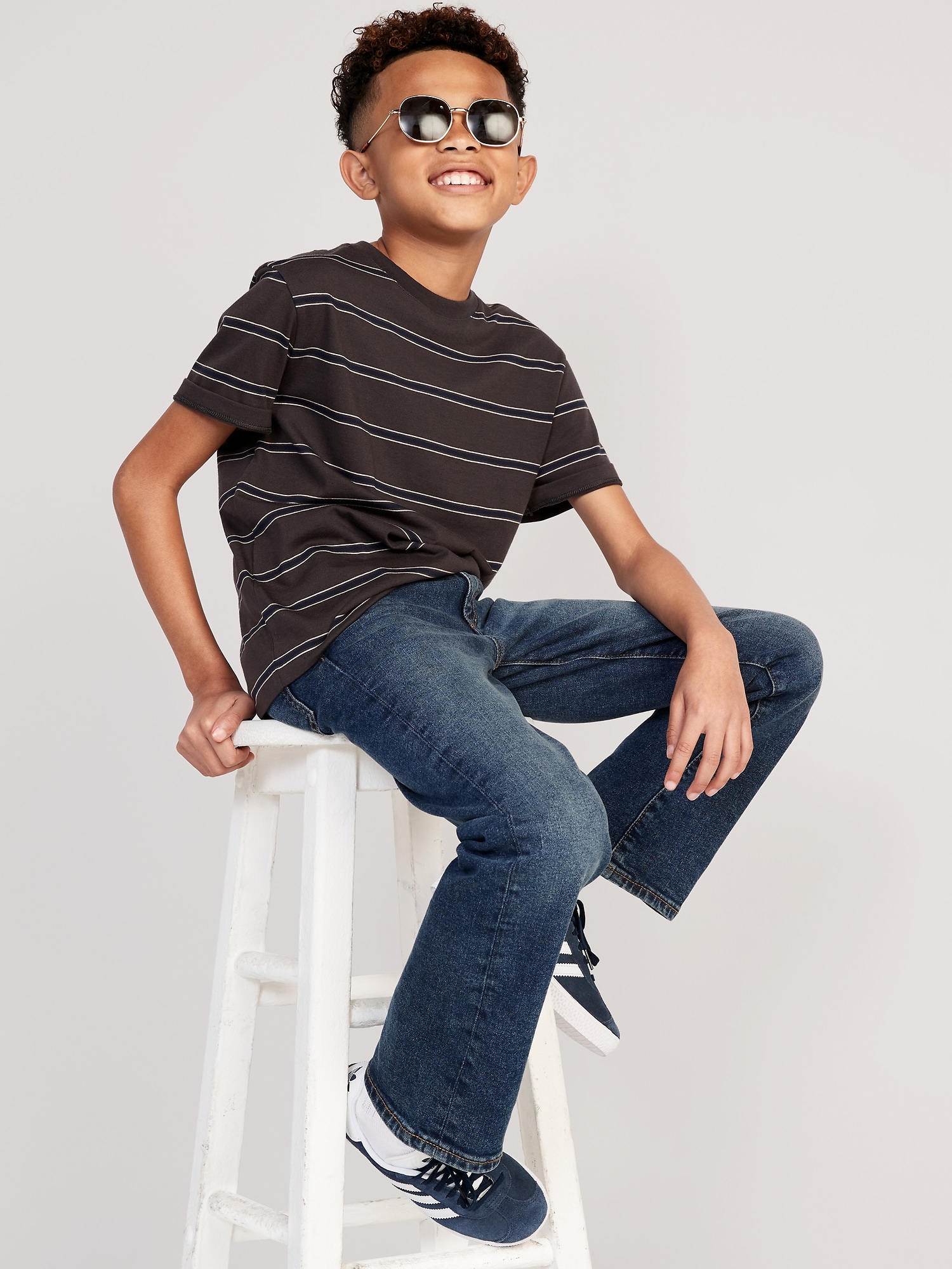 Built-In Flex Boot-Cut Jeans for Boys: Comfy, durable, wear-on-repeat faves., Interior adjustable waistband expands for a perfect fit., Snap-button closure in sizes 5-8; regular button closure in sizes 10-20., Scoop pockets and coin pocket in front; patch pockets in back., Engineered with innovative Built-In Flex stretch technology. Equal parts comfort & movement., Built-In Tough fabric has 2x the strength of regular denim!, Durable denim, with comfortable stretch and contrast topstitching., We’ve updated the fabric content on select colors & patterns of this style. Select inventory may reflect a slightly different fabric content of 91% cotton, 7% recycled cotton, 2% spandex., #543030