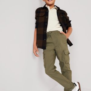 Built-In Flex Tapered Tech Cargo Pants for Boys: Elasticized waistband, with adjustable drawstirng., Faux fly., Diagonal on-seam hip pockets; vertical zippered pocket at left thigh; welt pocket at back right, with hidden zippered closure., Tapered rolled-cuff leg openings., Soft, quick-drying cotton/nylon twill., Engineered with innovative Built-In Flex stretch technology. Equal parts comfort & movement. Flexin’ on ’em., Easy pull-on style., Go-Dry moisture-wicking technology keeps him dry & comfortable., #875621