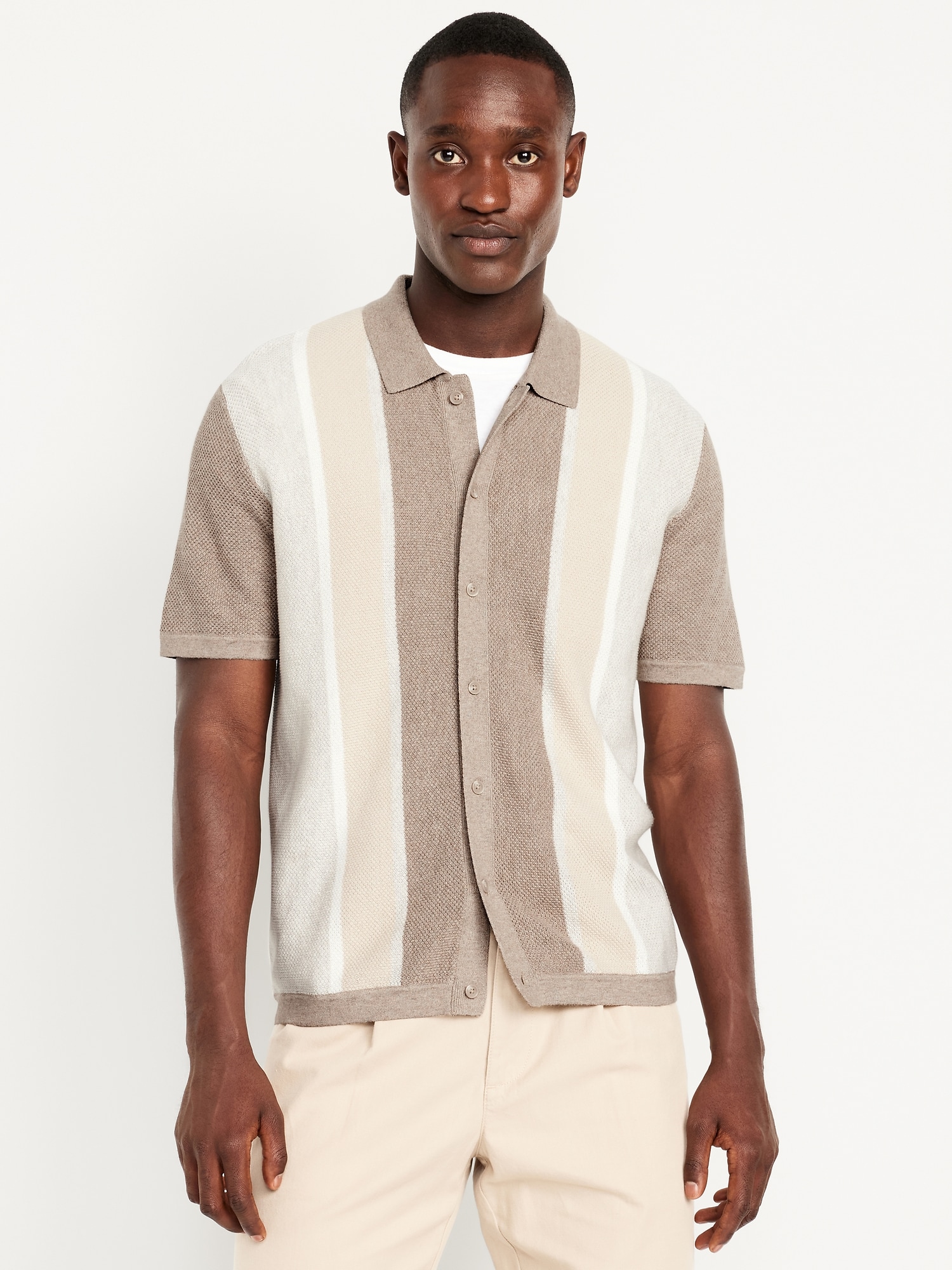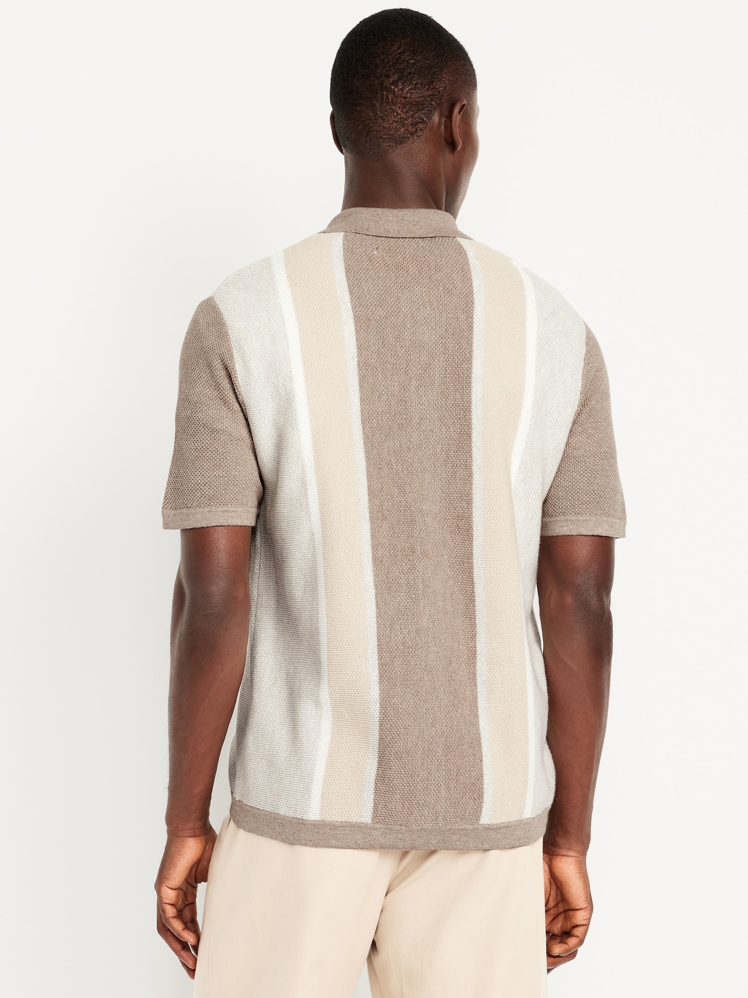 Button-Down Striped Polo: spread collar, short sleeves, buttoned placket, pullover style, #802042