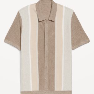 Button-Down Striped Polo: spread collar, short sleeves, buttoned placket, pullover style, #802042