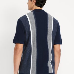 Button-Down Striped Polo: spread collar, short sleeves, buttoned placket, pullover style, #802042