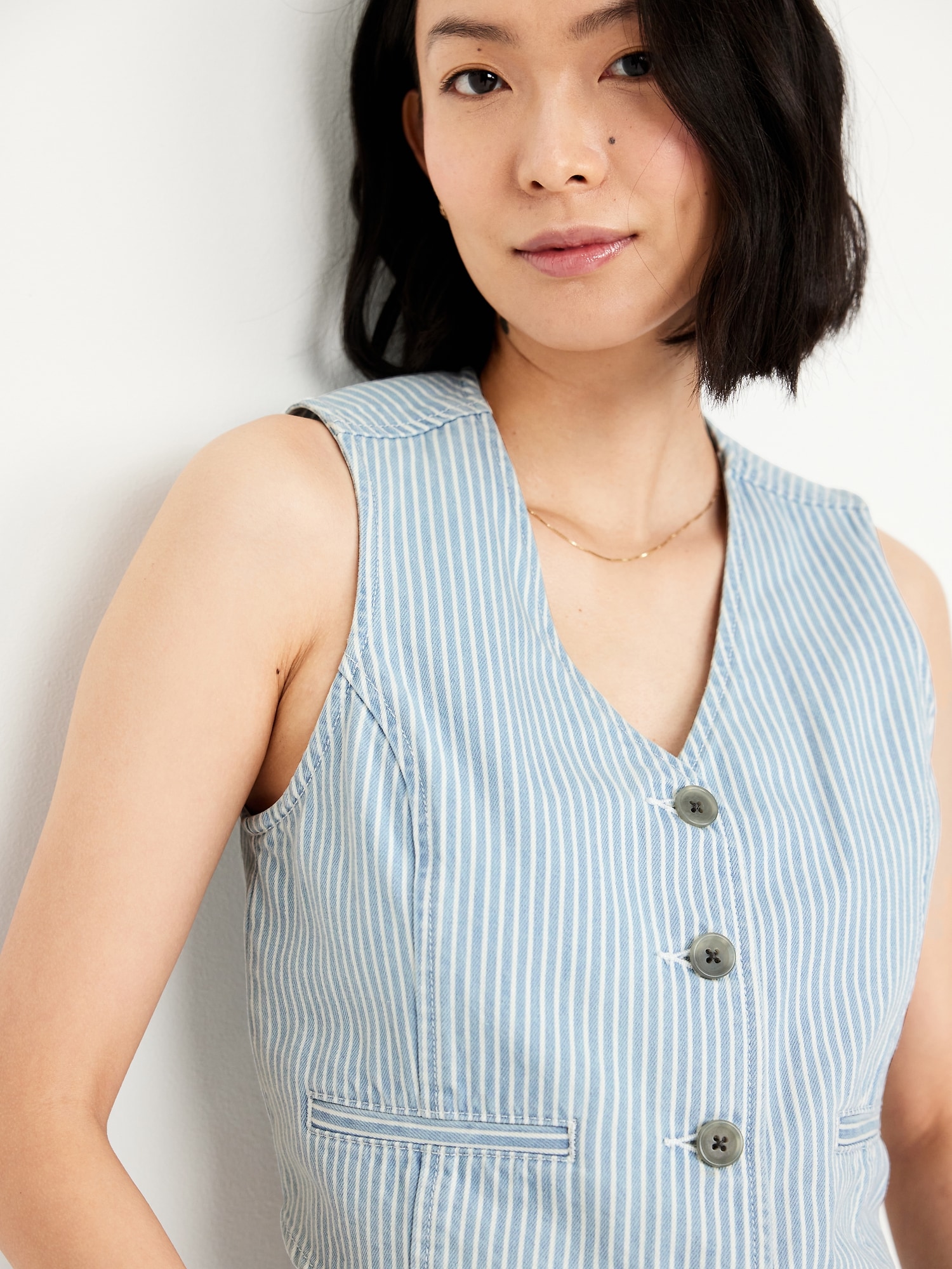 Button-Front Jean Vest
