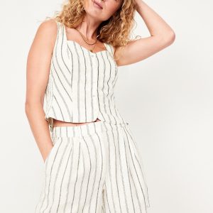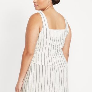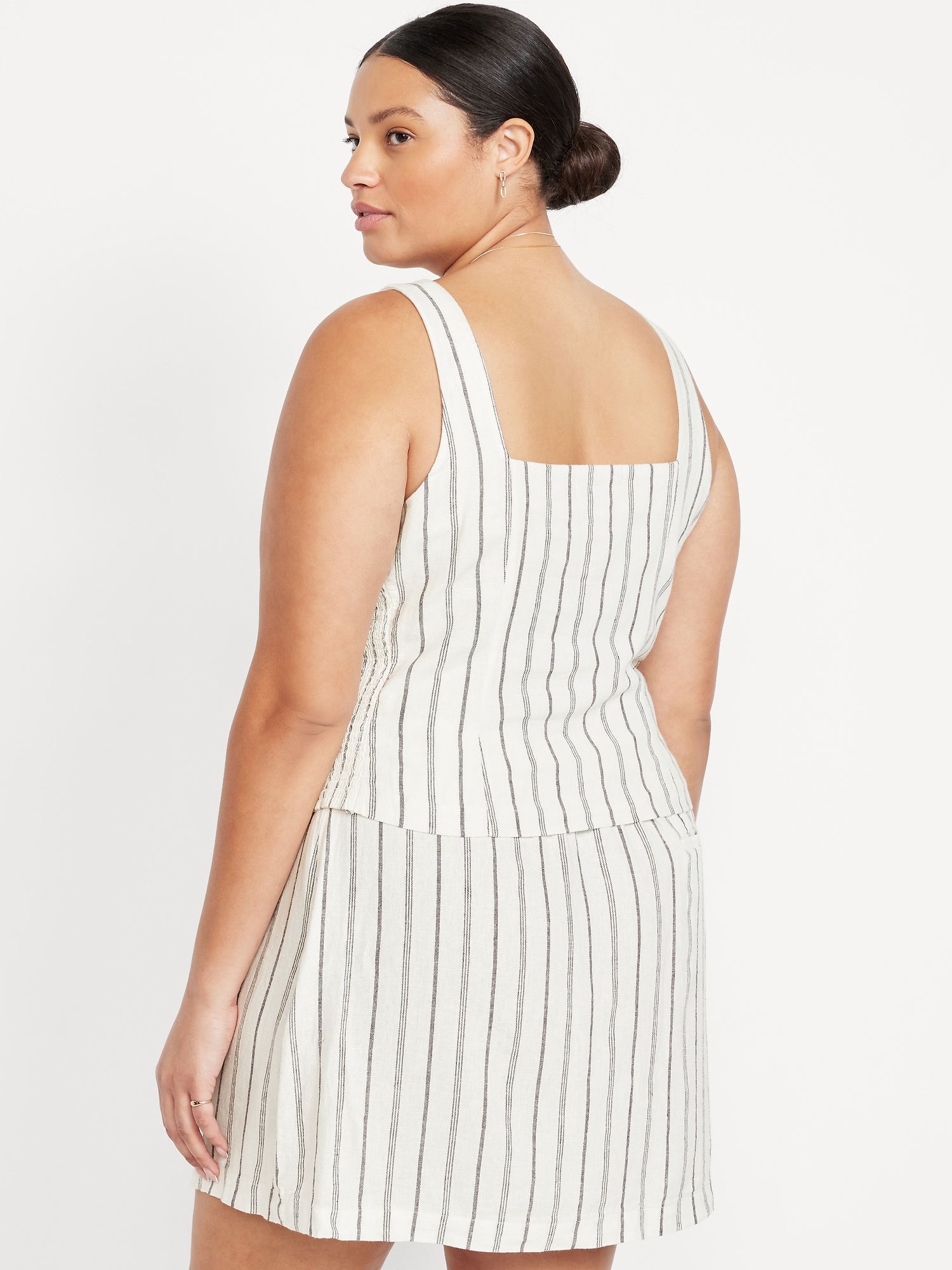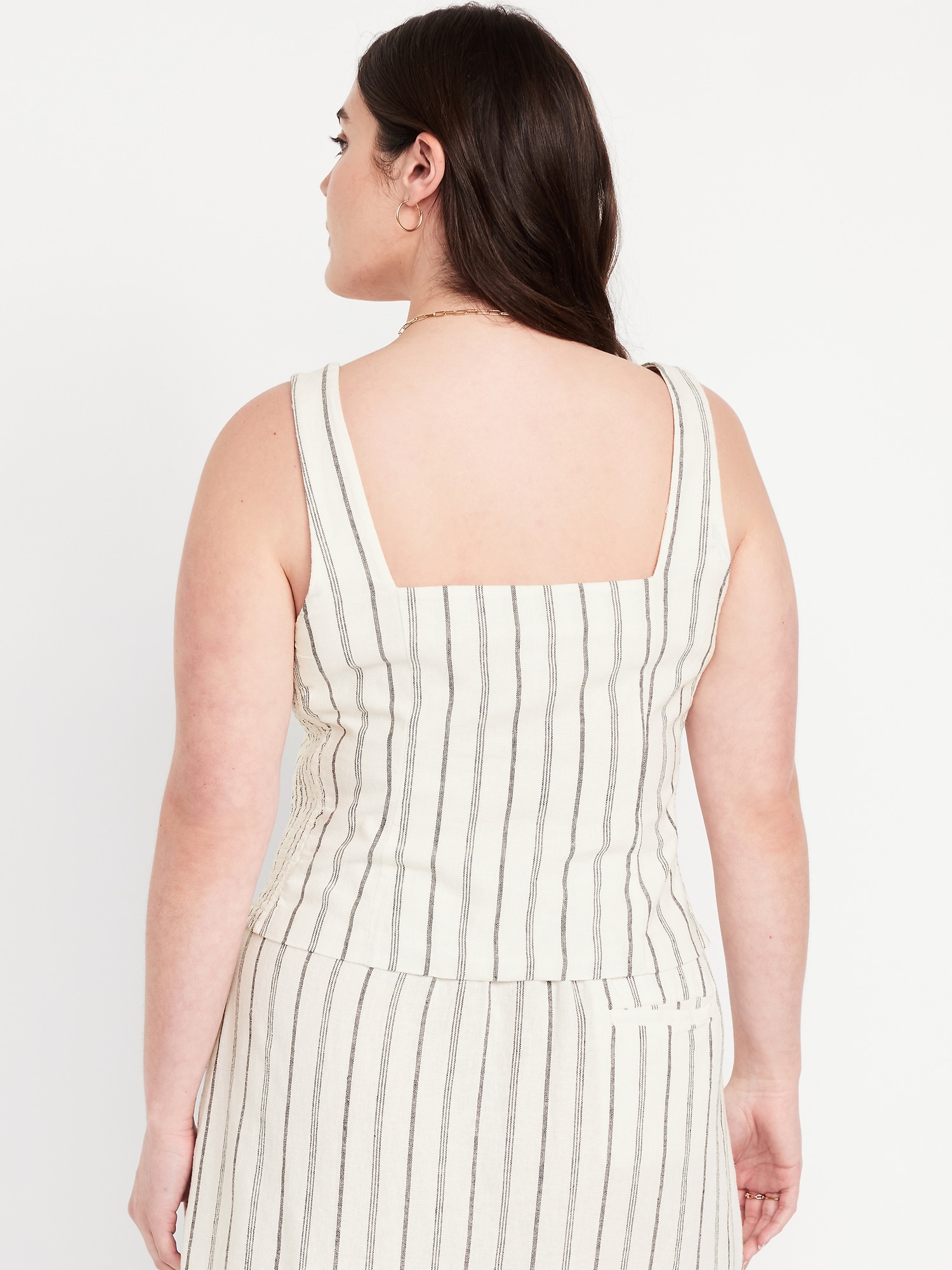 Button-Front Linen-Blend Vest: sweetheart neckline, wide straps, five-button front, smocked side panels, princess seams, #704063
