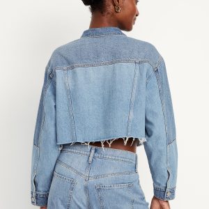 Canvas Crop Utility Jacket: spread collar, long sleeves, snap cuffs, snap front, patch chest pockets, seamed yoke, #663795