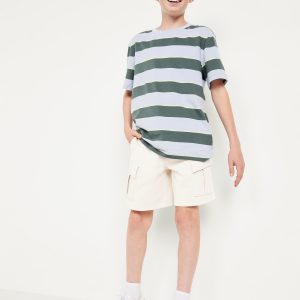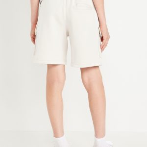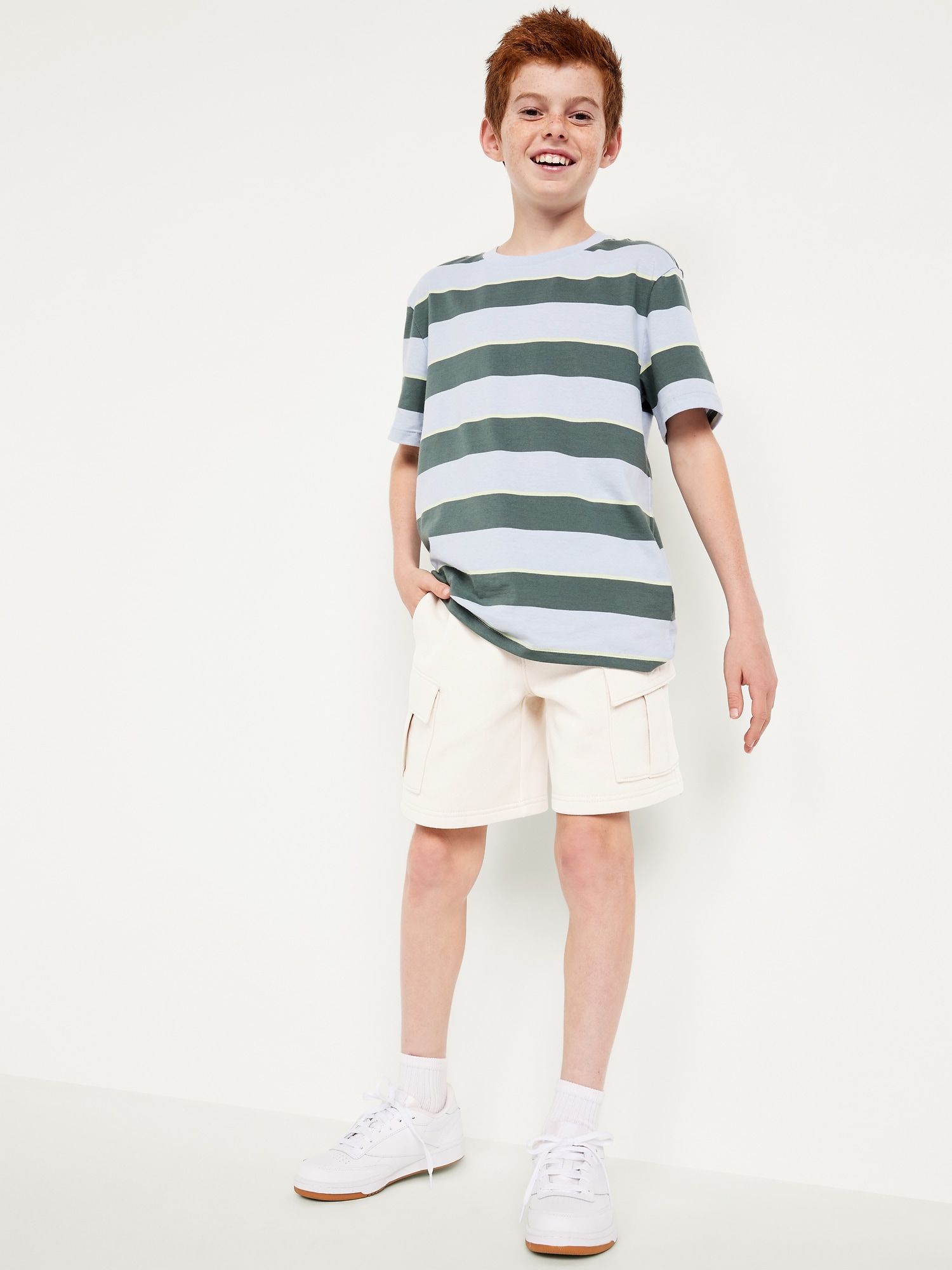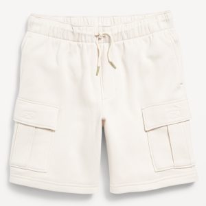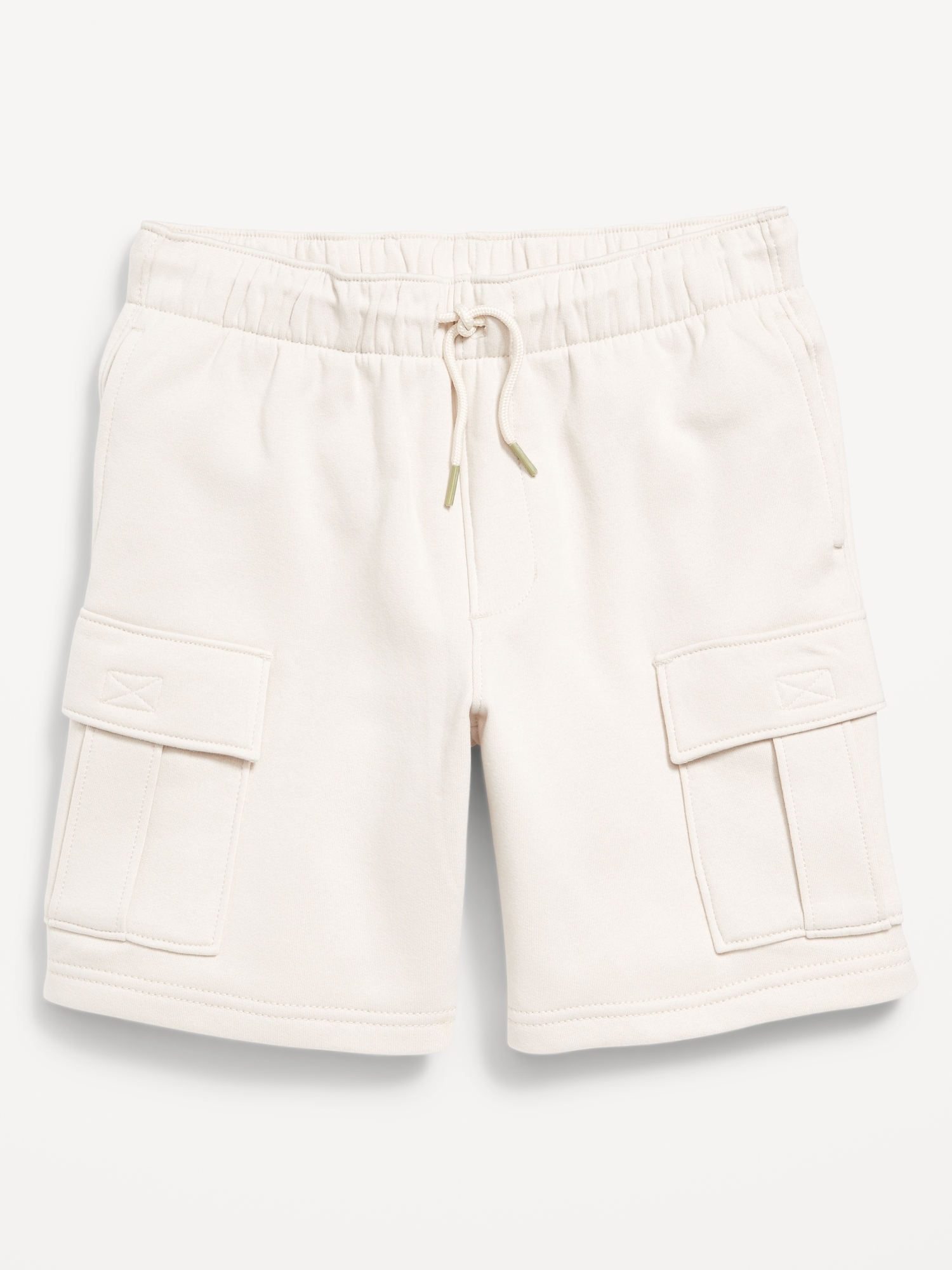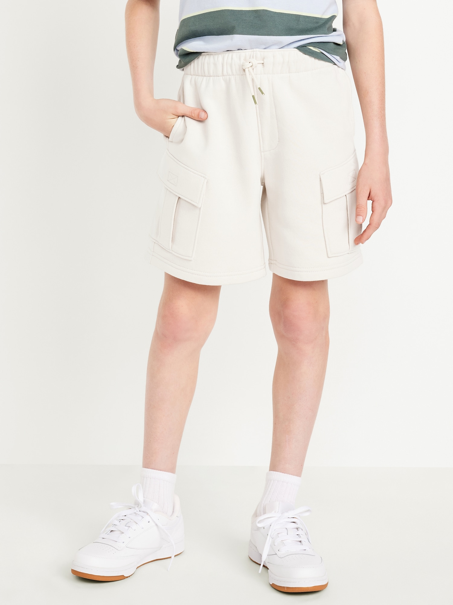 Cargo Fleece Shorts for Boys: elasticized waistband, functional drawstring, on-seam side pockets, flap adhesive secure-close cargo pockets, single welt pocket at back, #693213