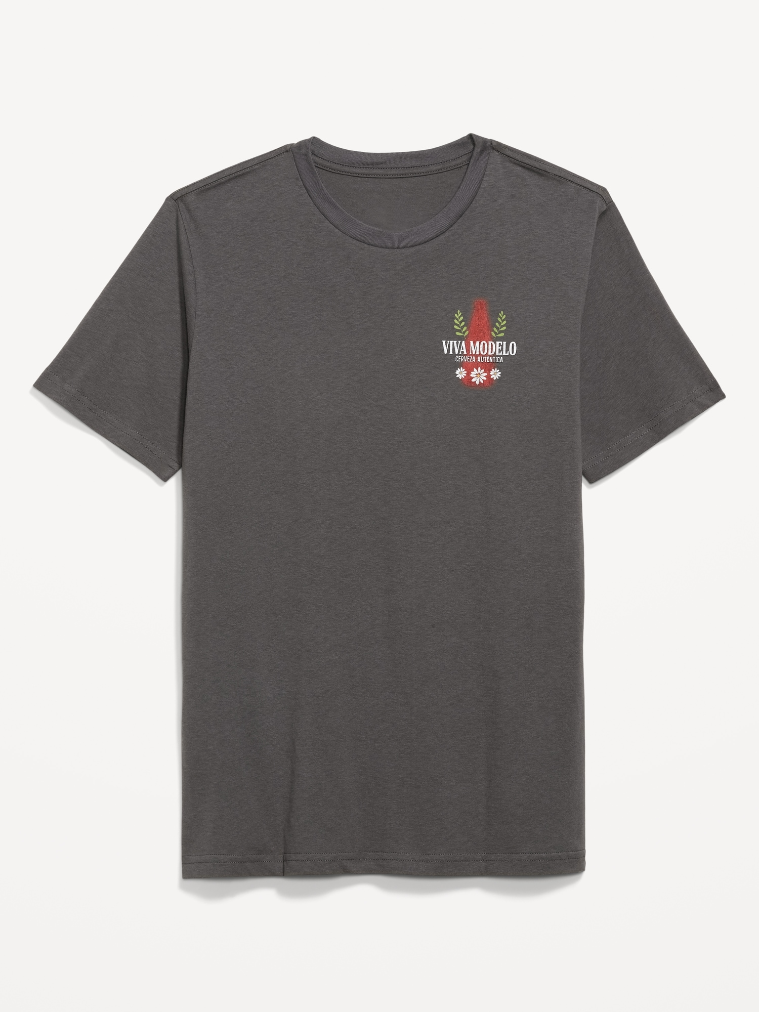 Cerveza© Modelo™ T-Shirt: rib-knit crew neck, short sleeves, licensed beer chest graphic and full back graphic, Imported by ©2025 Crown Imports, Chicago, IL, #751405