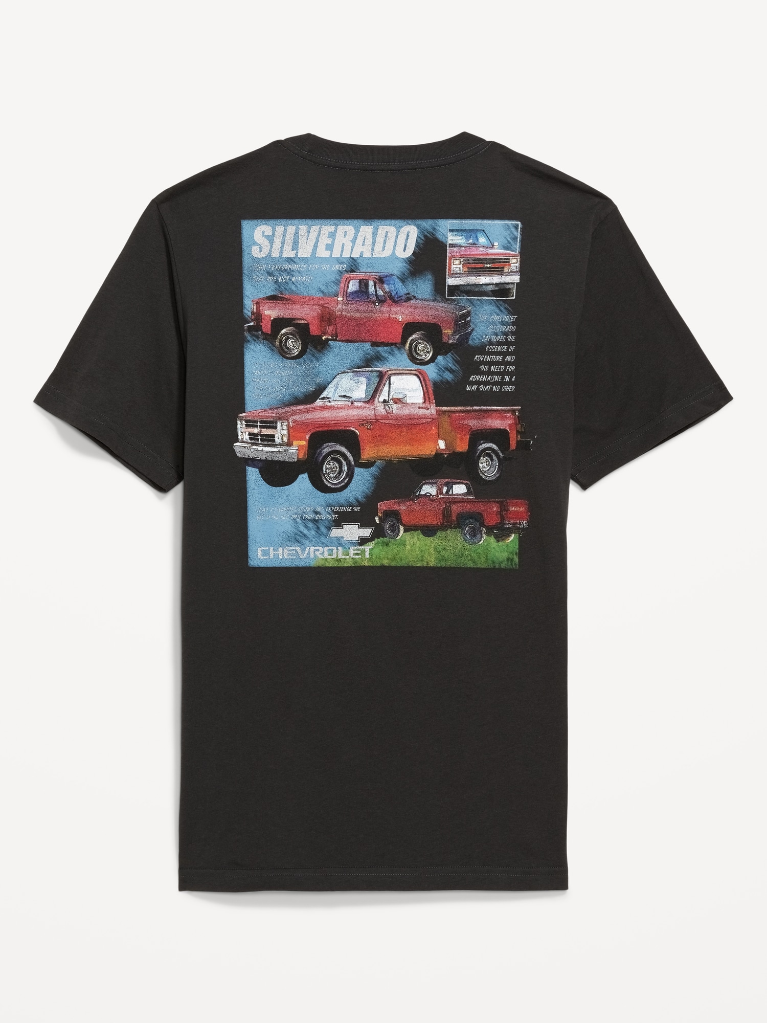 Chevroletâ„¢ Silveradoâ„¢ T-Shirt: rib-knit crew neck, short sleeves, licensed chest graphic and full back graphic, Copyright 2025 General Motors. All Rights Reserved, #751497