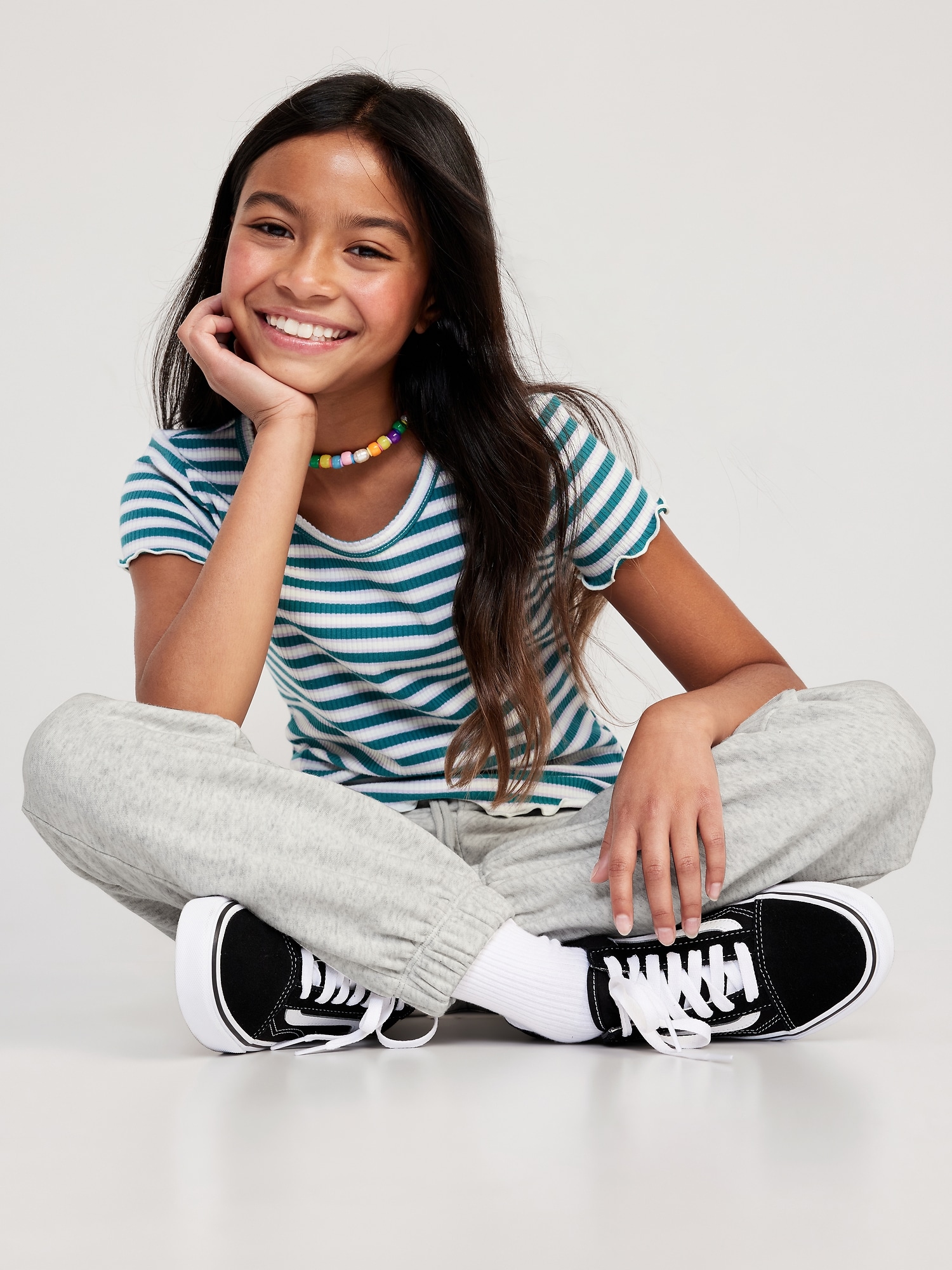 Cinched-Hem Jogger Sweatpants for Girls: Elasticized waist, with adjustable drawstring., On-seam hip pockets., Cinched, elasticized hem., Soft, cozy french terry., Easy pull-on style., #710352