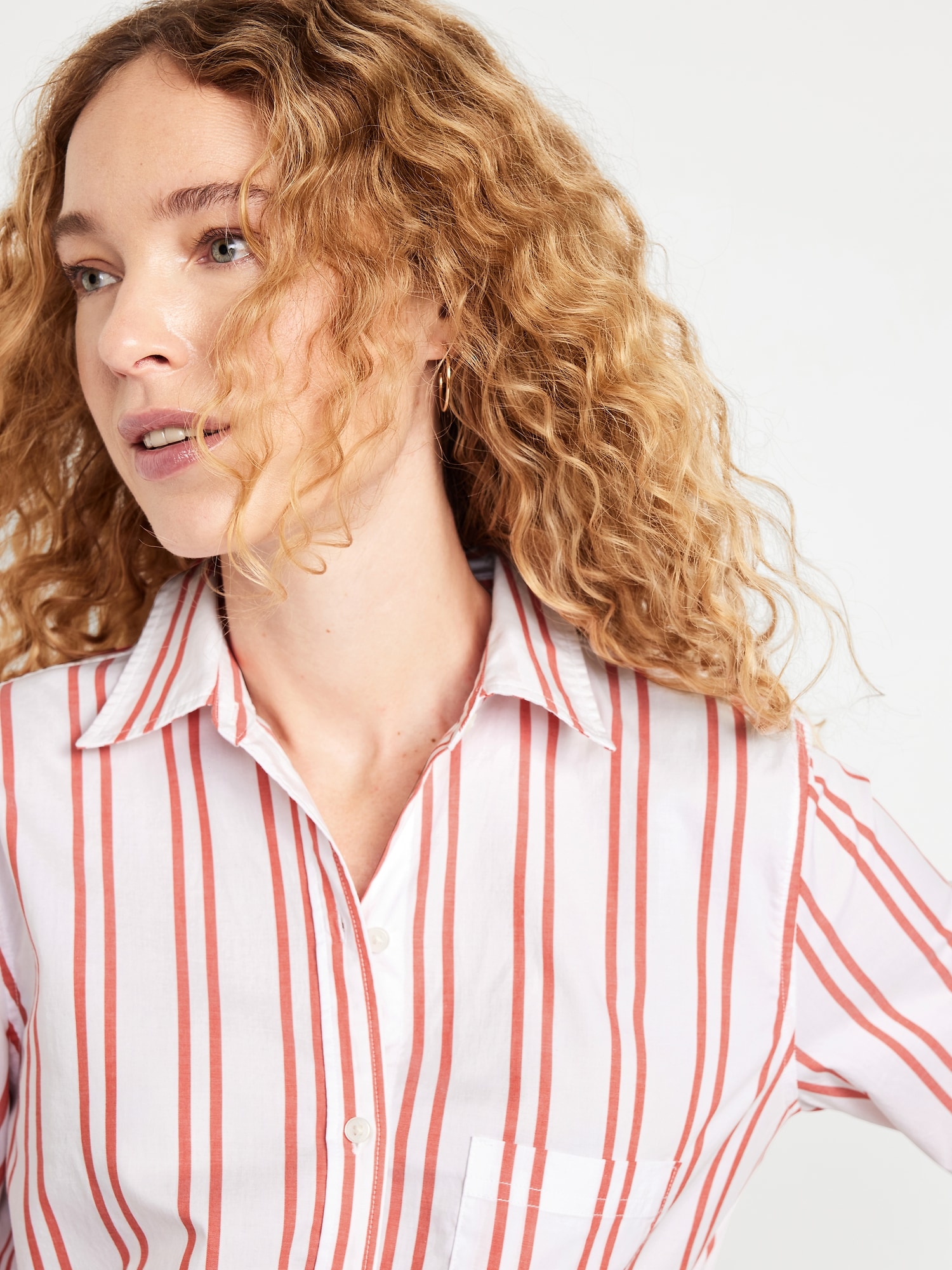 Classic Button-Down Shirt: spread collar, long sleeves, buttoned cuffs, button front, patch chest pocket, curved hem, fading, #576683