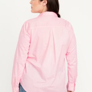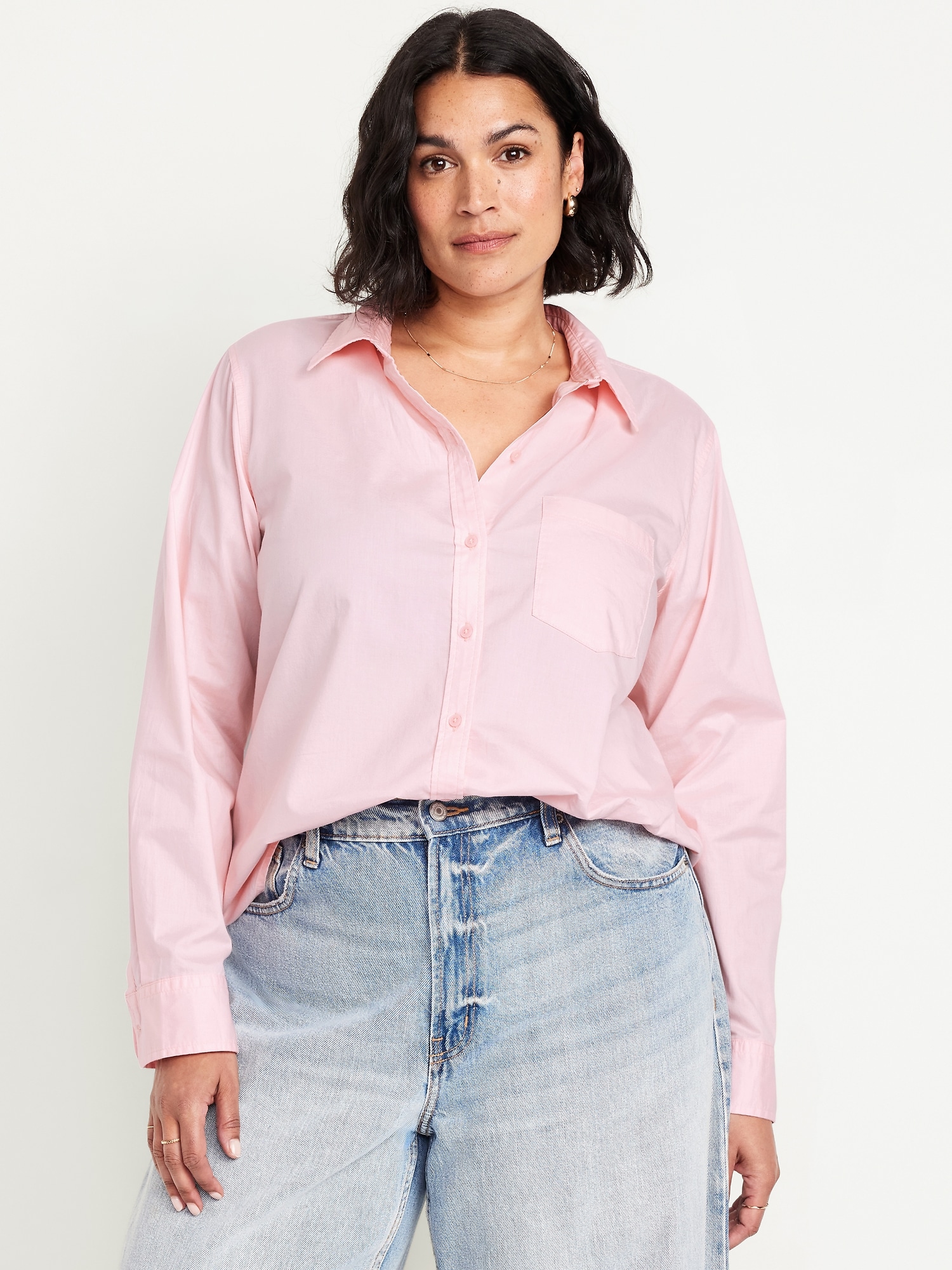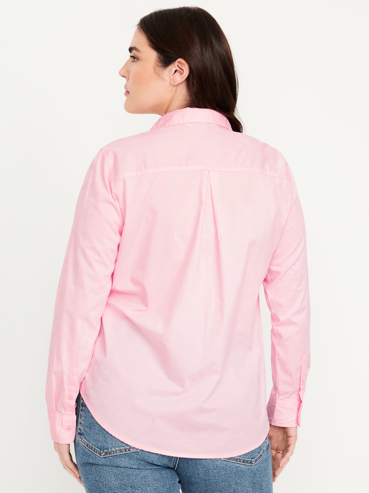 Classic Button-Down Shirt: spread collar, long sleeves, buttoned cuffs, button front, patch chest pocket, curved hem, fading, #576683
