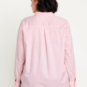 Classic Button-Down Shirt: spread collar, long sleeves, buttoned cuffs, button front, patch chest pocket, curved hem, fading, #576683