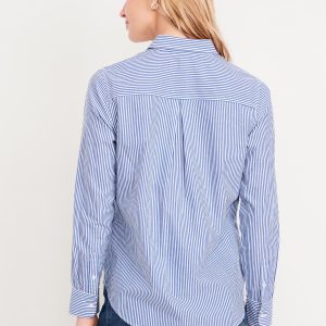 Classic Button-Down Shirt: spread collar, long sleeves, buttoned cuffs, button front, patch chest pocket, curved hem, fading, #576683