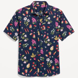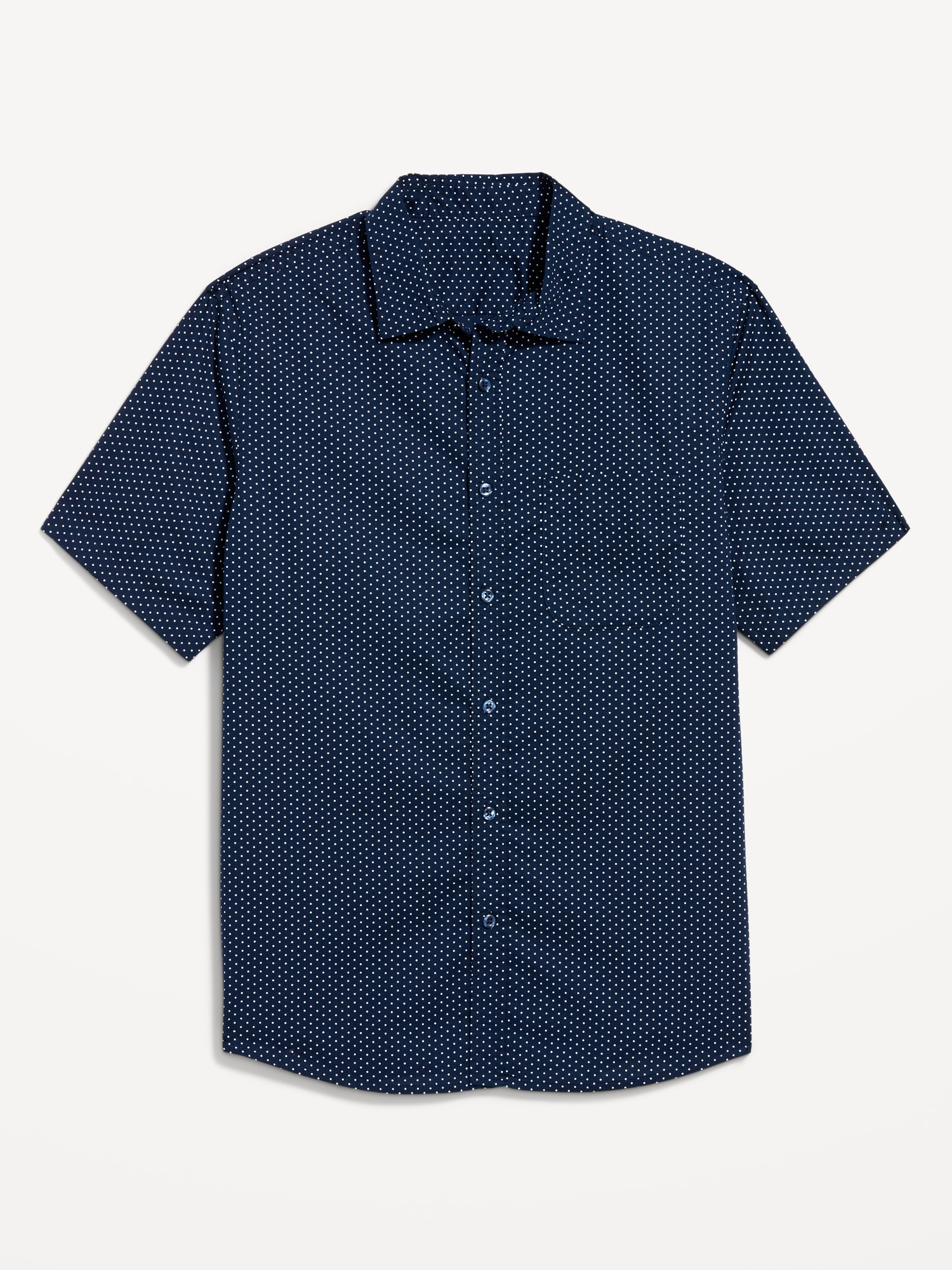 Classic Fit Everyday Pocket Shirt: spread collar, short sleeves, full-button front, patch chest pocket, prints vary, #807396