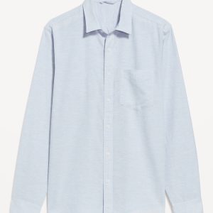 Classic Fit Linen-Blend Shirt: spread collar, long sleeves, buttoned cuffs, full-button front, patch chest pocket, #691163