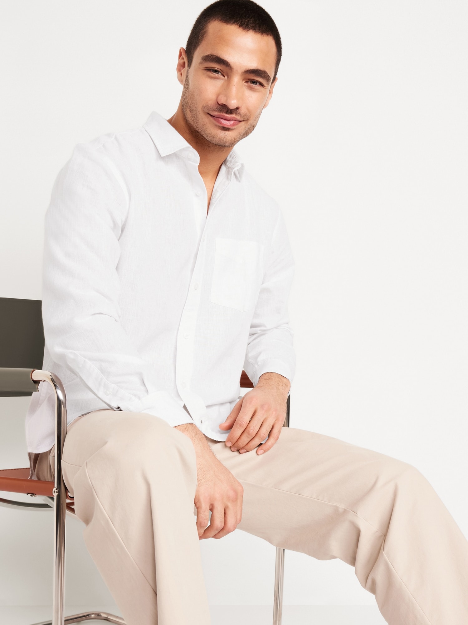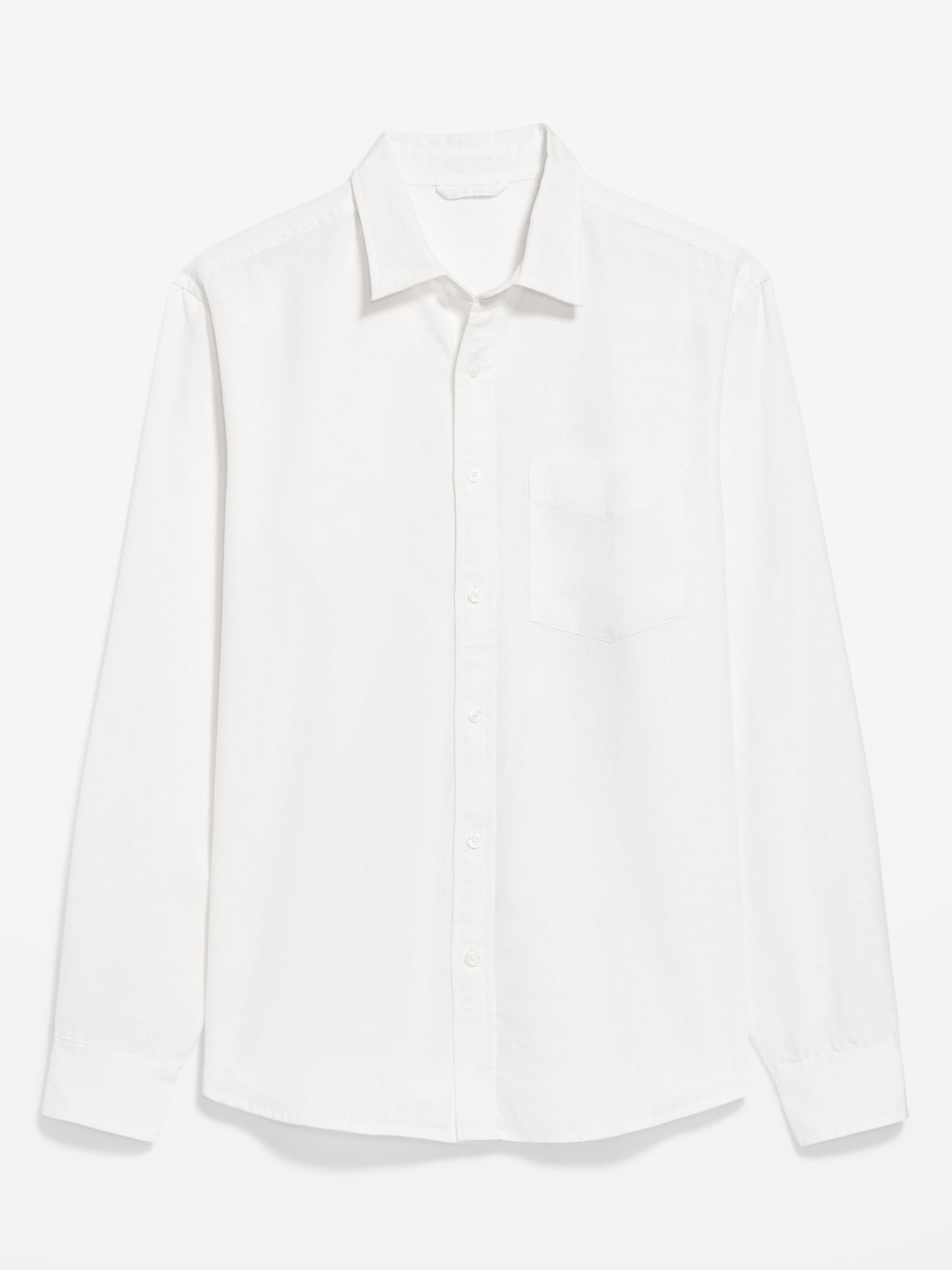 Classic Fit Linen-Blend Shirt: spread collar, long sleeves, buttoned cuffs, full-button front, patch chest pocket, #691163