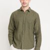 Classic Fit Linen-Blend Shirt: spread collar, long sleeves, buttoned cuffs, full-button front, patch chest pocket, #691163