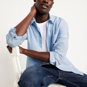 Classic Fit Linen-Blend Shirt: spread collar, long sleeves, buttoned cuffs, full-button front, patch chest pocket, #691163