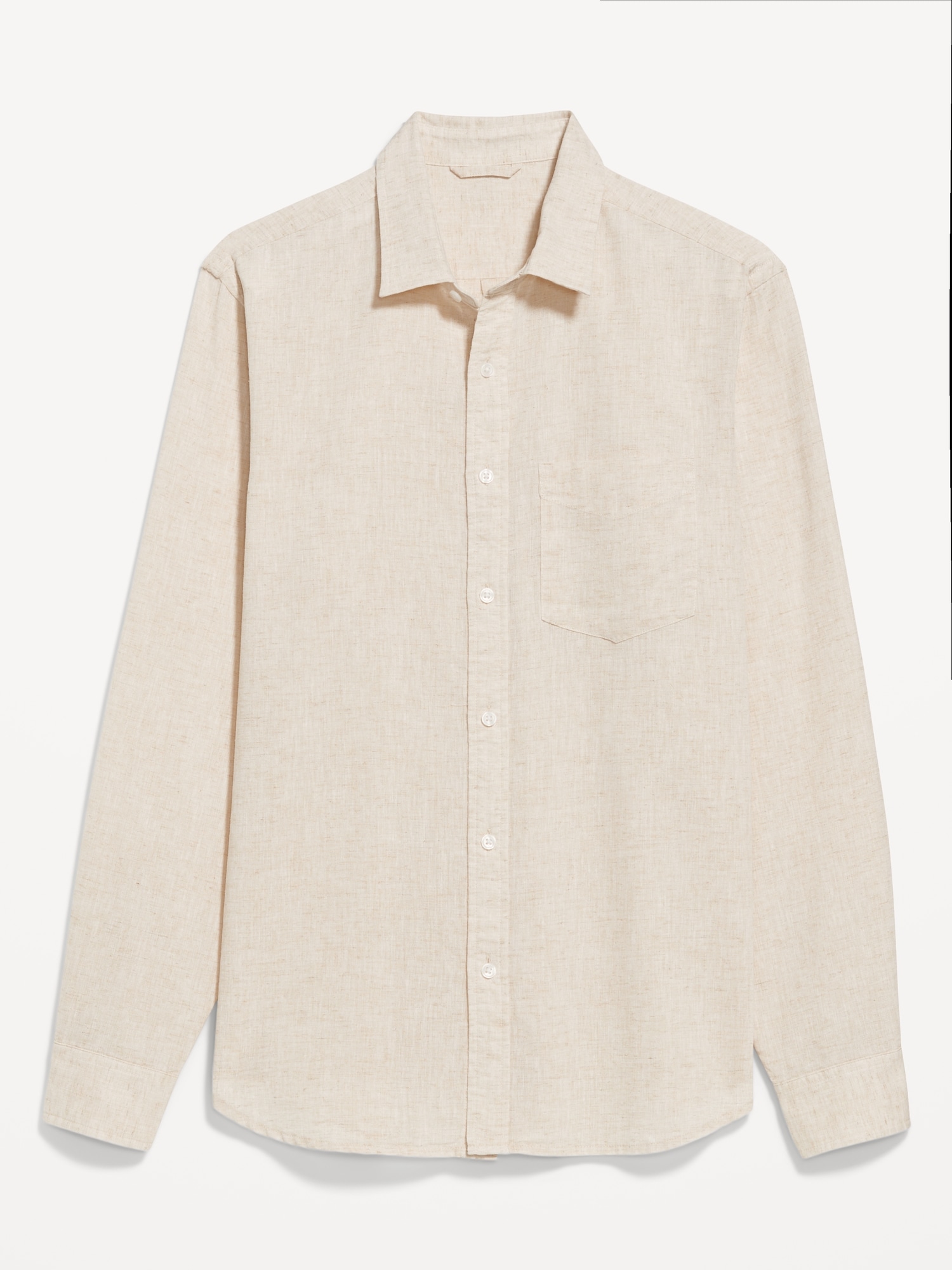 Classic Fit Linen-Blend Shirt: spread collar, long sleeves, buttoned cuffs, full-button front, patch chest pocket, #691163