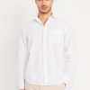 Classic Fit Linen-Blend Shirt: spread collar, long sleeves, buttoned cuffs, full-button front, patch chest pocket, #691163